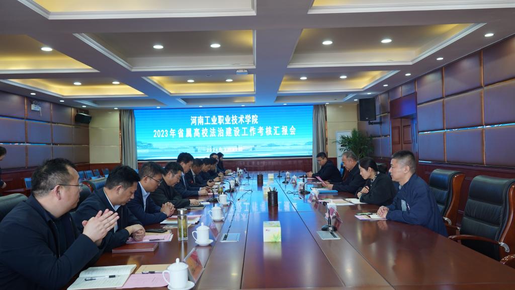 3月22日,省属高校法治建设工作考核组一行5人在考核组组长、河南科技职业大学党委书记苏宇带领下,实地考核学校2023年法治建设工作,同时进行省属高校党政负责人2023年度述法工作。学校党委书记温道军,校长王伟,党委副书记、工会主席王仁伟出席,相关部门负责人参加,会议由王仁伟主持。
