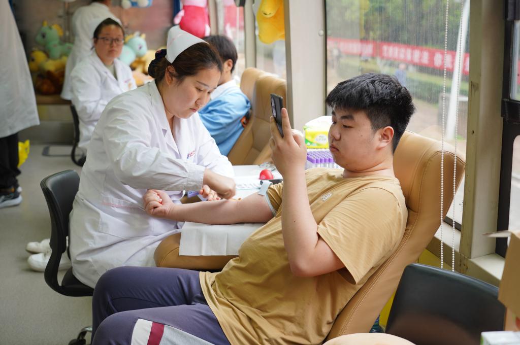 献血活动现场,青年志愿者们有序进行信息登记、健康征询、初步检测等步骤,他们躺在献血椅上,或许有些许的紧张,但都没有丝毫的犹豫。现场工作人员与志愿者积极互动,普及献血和血液知识,细心提醒同学们献血过程中及献血后要注意的事项。每一滴血液都将成为拯救生命的强大力量,每一位志愿者的行动都是对生命的尊重和爱护。