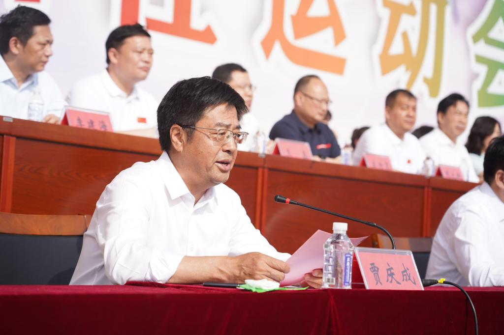 党委书记温道军致开幕词。他指出,体育作为“五育并举”的重要一环,是促进学校事业高质量发展的重要动力,是展示学校文化软实力的重要平台,对于培养青年学生的爱国主义、集体主义、社会主义精神和奋发向上、顽强拼搏的意志品质,实现“以体育智、以体育心”具有重要意义。学校作为“全国群众体育工作先进单位”,始终坚持把体育工作作为基础性工程来抓,大力推进体育教学改革,广泛开展“阳光体育”运动,2023年学校体育工作荣获国家级赛事奖项10项、省级赛事奖项31项,展现了全校师生高昂向上、拼搏进取的良好风貌。他表示,一年一度的田径运动会,既是对学校体育工作成果的一次集中检阅,也是对师生拼搏意识、团队精神、顽强意志的一次集体考验,希望运动员们顽强拼搏,赛出风格、赛出水平,希望裁判员们严格规程操作,维护赛场纪律,确保各项赛事活动公平、公正、公开。期望广大师生以本次运动会为契机,在全校持续营造崇尚健康、热爱运动的浓厚氛围,打造“健康工院活力工院”,努力培养更多朝气蓬勃、德技并修的高素质技术技能人才。