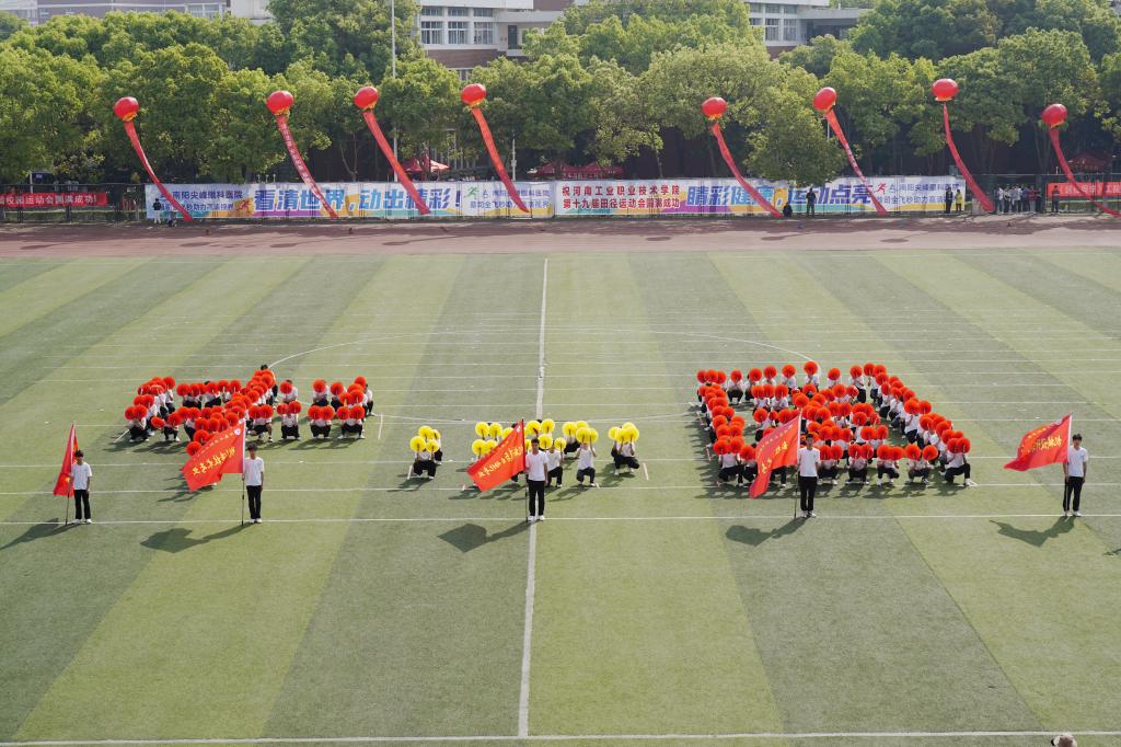温道军宣布:“河南工业职业技术学院第十九届田径运动会开幕!”