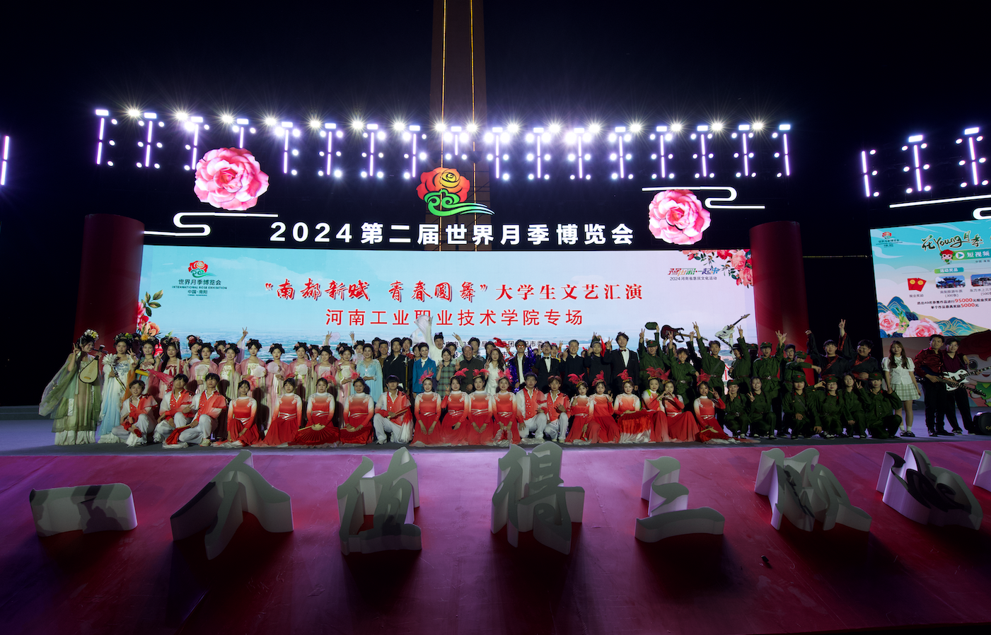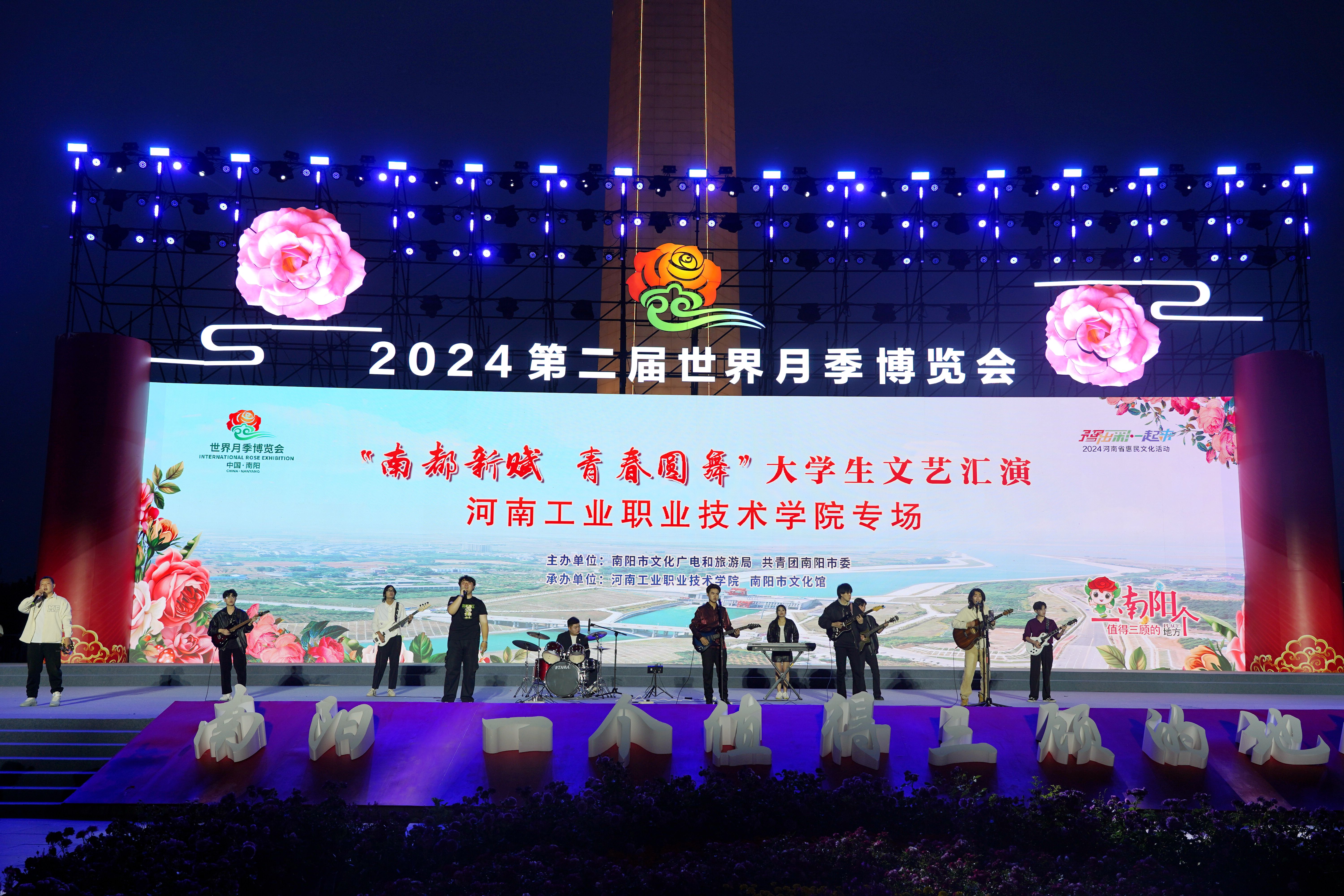 花开五月,风华正茂,南阳月季,香飘五洲。在第二届世界月季博览会隆重举行和五四青年节来临之际,为宣传南阳深厚的文化底蕴,助力月季博览会成功举办,激励团员青年传承和发扬五四精神,5月2日晚,2024第二届世界月季博览会“南都新赋 青春圆舞”大学生文艺汇演河南工业职业技术学院专场演出在南阳市滨河路解放广场隆重举行。党委宣传部、党委学生工作部、团委、艺术教育中心等部门有关负责人、各学院师生代表及社会各界群众数千人齐聚解放广场,共襄盛会。