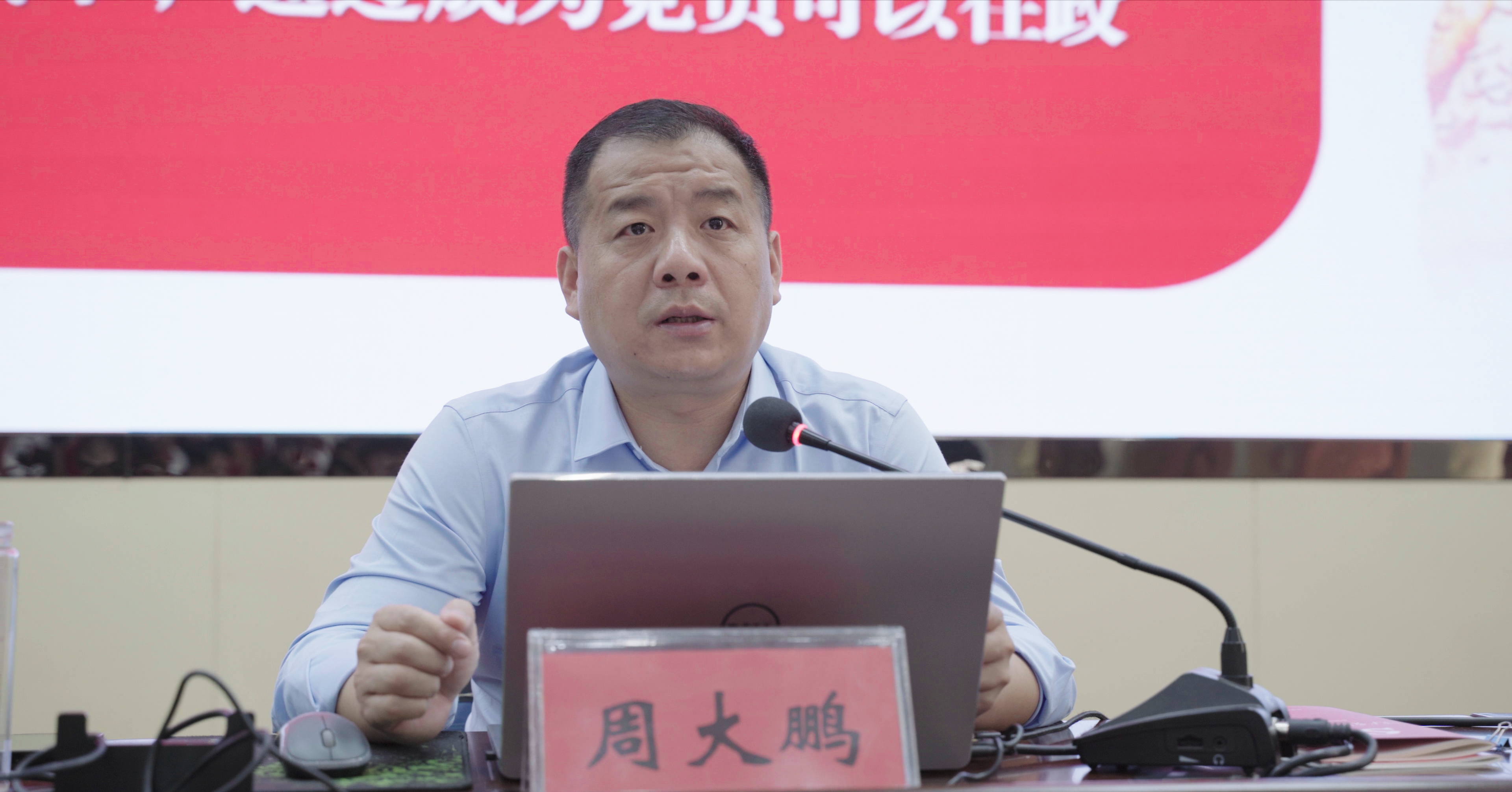 纪委副书记、纪检监察室主任周大鹏以《加强党纪学习教育,争做新时代合格党员》为题作专题辅导