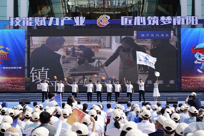 开幕式上,全场起立,奏唱国歌。与会嘉宾观看了大赛专题片《技能赋力产业 匠心筑梦南阳》。各参赛代表队依次入场,裁判员代表、选手代表分别宣誓。