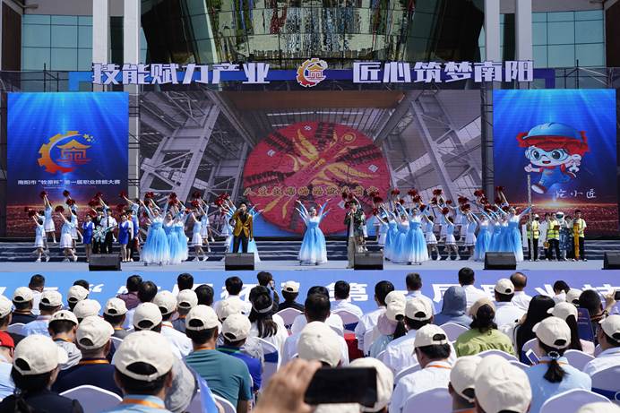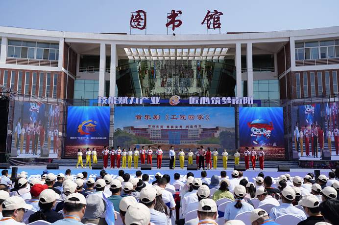开幕式上,我校与南阳农业职业学院、南阳科技职业学院、南阳技师学院展演了《匠心筑梦》《职教花开绽新颜》《工匠回家》《技能报国 强国有我》等精彩节目,将技能元素与舞台艺术深度融合,打造一场简约、精彩、奋进的艺术盛会。