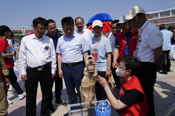开幕式结束后,梅乐堂、刘江一行来到各代表团技能展示区进行观摩指导,认真听取项目介绍,与项目负责人、技艺大师进行深入交流,与我校获得河南省第二届职业技能大赛金奖的学生合影留念,并前往赛场进行观摩。
