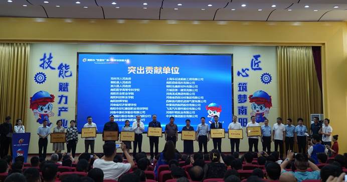大会分别为26个世赛选拔项目、29个国赛精选项目获奖选手颁奖;为河南工业职业技术学院等10个单位颁发“优秀组织”奖;为河南工业职业技术学院、牧原食品股份有限公司颁发“特殊贡献单位”奖;为邓州市人民政府等23个单位颁发“突出贡献单位”奖;为方城县人社局等7个单位颁发“技能展示‘优秀组织奖’”;为桐柏县根艺雕刻等10个项目颁发“技能展示项目‘最佳人气奖’”。