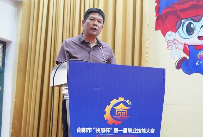 南阳市人民政府副秘书长唐荣涛致闭幕词,并宣布南阳市“牧原杯”第一届职业技能大赛胜利闭幕。唐荣涛向大赛的成功举办和获奖选手表示热烈的祝贺!向为付出辛勤努力的裁判员、志愿者、工作人员和新闻工作者表示衷心的感谢!他指出,本届大赛是南阳市第一届规模最大的综合性职业技能竞赛,希望各获奖选手和单位珍惜荣誉、再接再厉,大力发扬劳模精神、劳动精神、工匠精神,在今后的工作中再创佳绩。他表示,将以此次大赛为契机,继续创新工作方法,提升工作实效,发掘和培养更多优秀的“大国工匠”“能工巧匠”,激励更多劳动者特别是青年一代走技能成才、技能报国之路,为省域副中心城市建设贡献重要的技能人才力量。