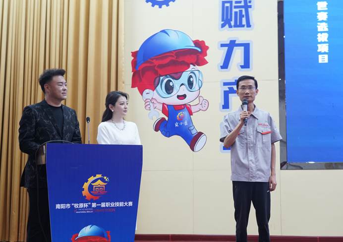 我校2023年全国技术能手获得者邰鑫,南阳技师学院优秀毕业生、上海乐征途传播有限公司总经理樊安崇分别发言并寄语各获奖选手。