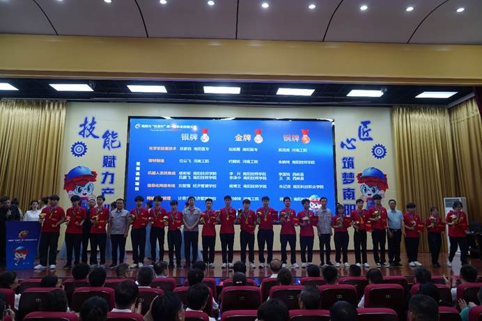 5月18日,南阳市“牧原杯”第一届职业技能大赛闭幕式在我校举行。来自全市各县市区、有关院校的23支代表队的620余名选手,同台竞技,赛场争锋,经过激烈角逐,共选拔出180名优秀获奖者。