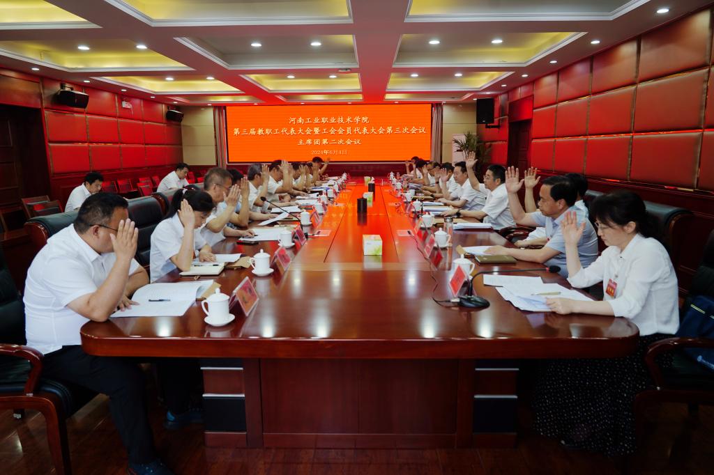 河南工业职业技术学院第三届教职工代表大会暨工会会员代表大会第三次会议圆满完成各项议程,在激昂的《国际歌》中胜利闭幕。