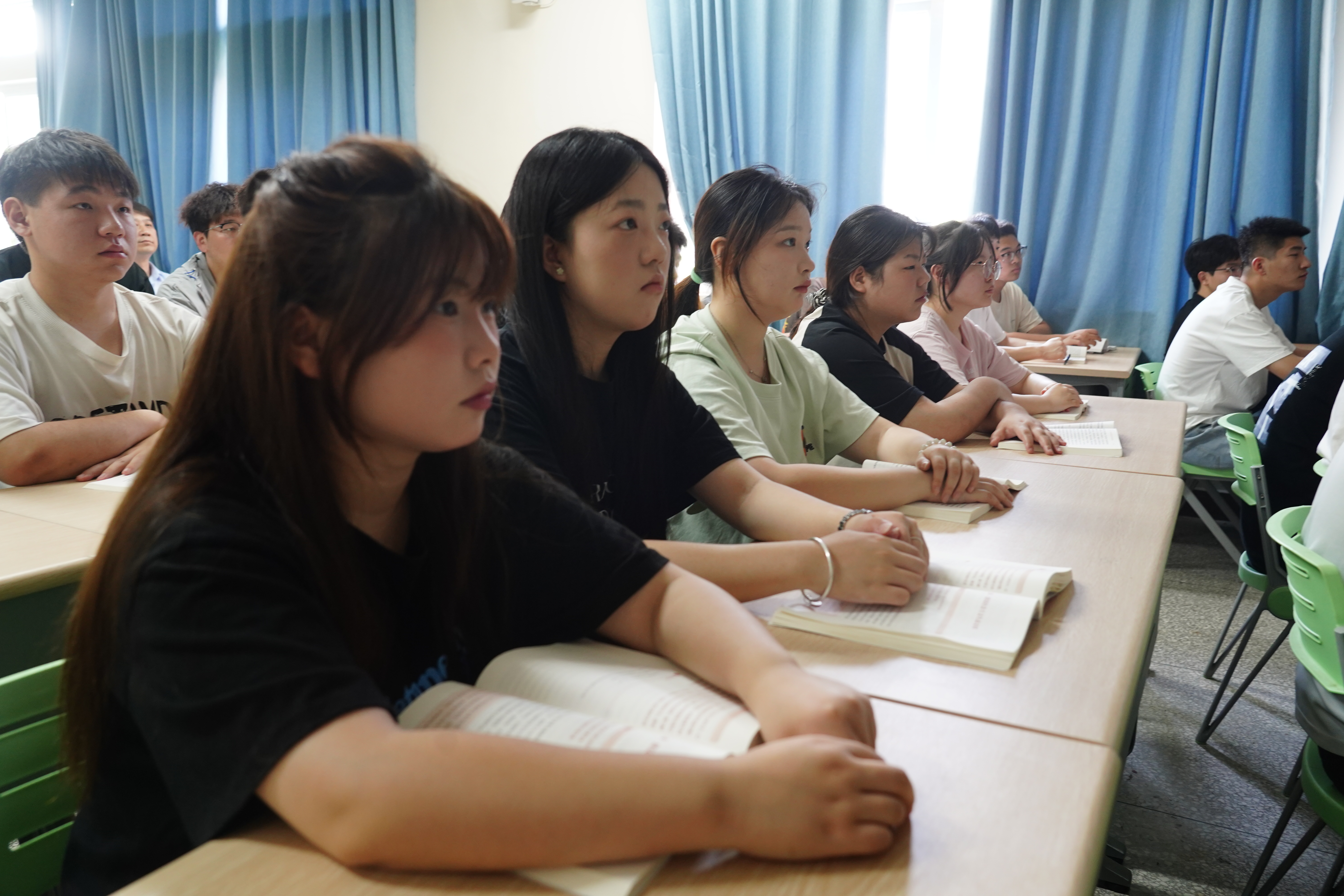 为贯彻落实习近平总书记关于学校思政课建设的重要指示精神,切实推进学校思想政治教育工作和思想政治理论课建设,提高思政课教学质量和水平,6月12日上午,党委书记王伟、副校长樊有平深入教学楼X2208教室听了马克思主义学院梁丹老师讲授的《习近平新时代中国特色社会主义思想概论》课,党委宣传部、教务处、马克思主义学院等单位负责人和其他相关人员一起听课。