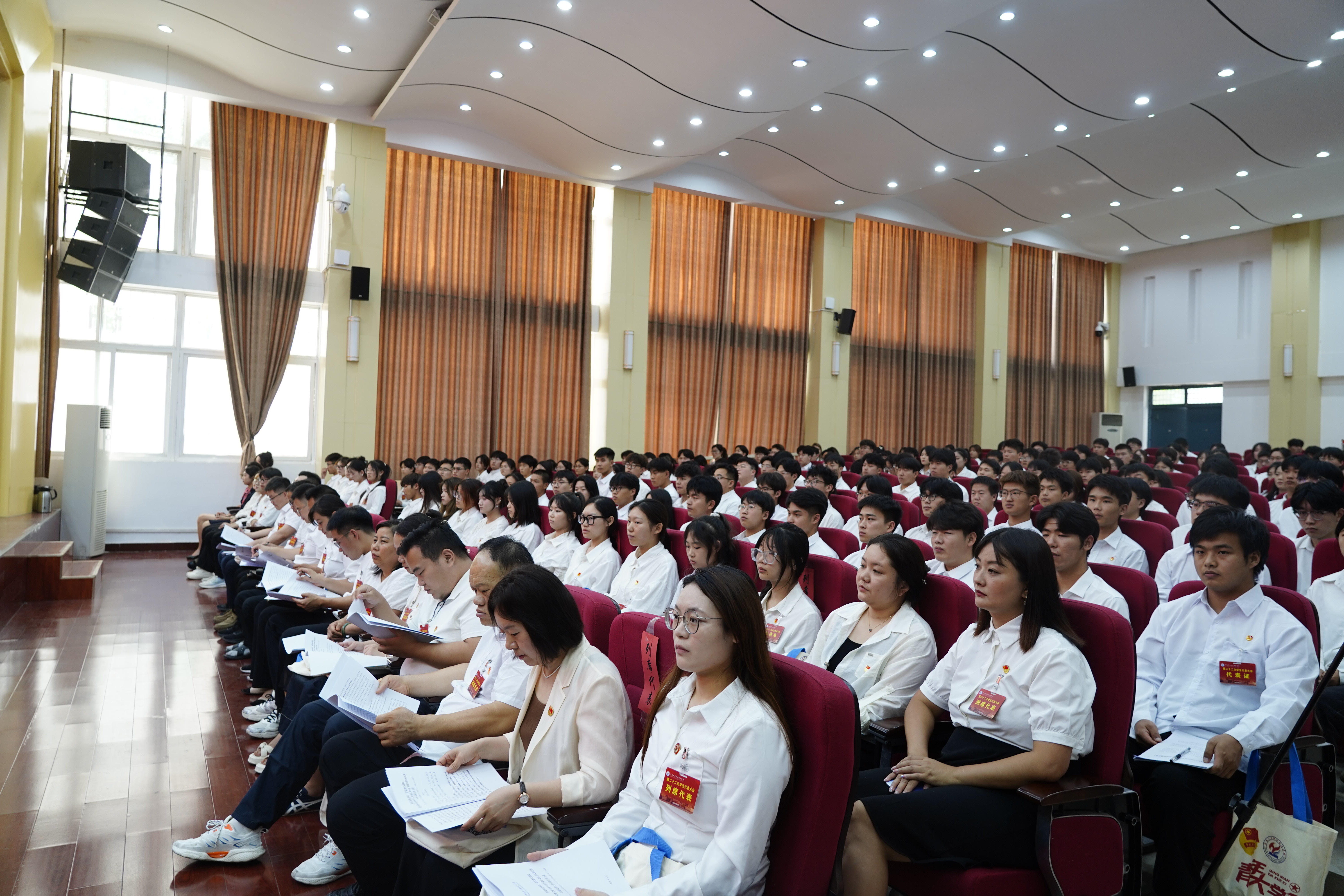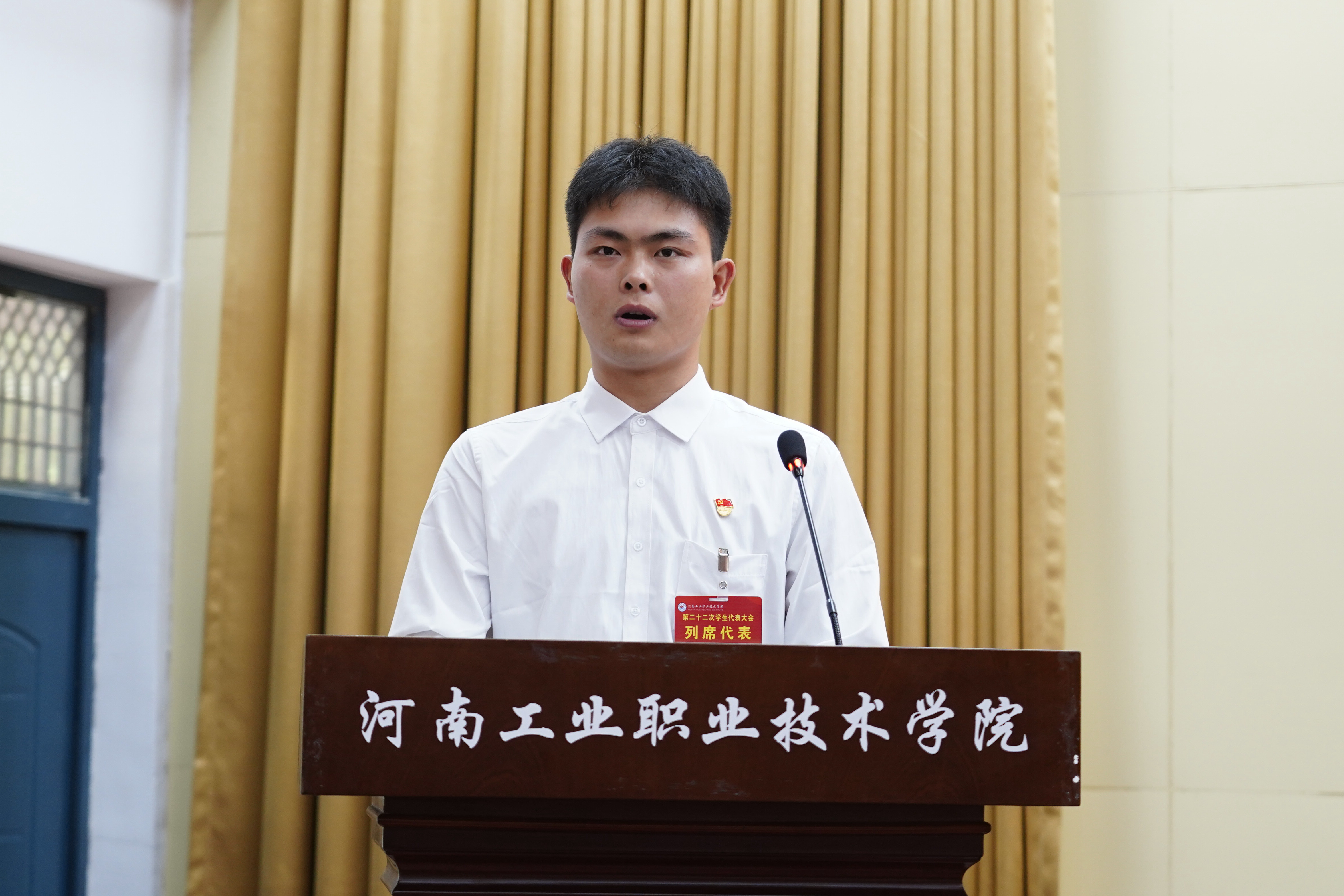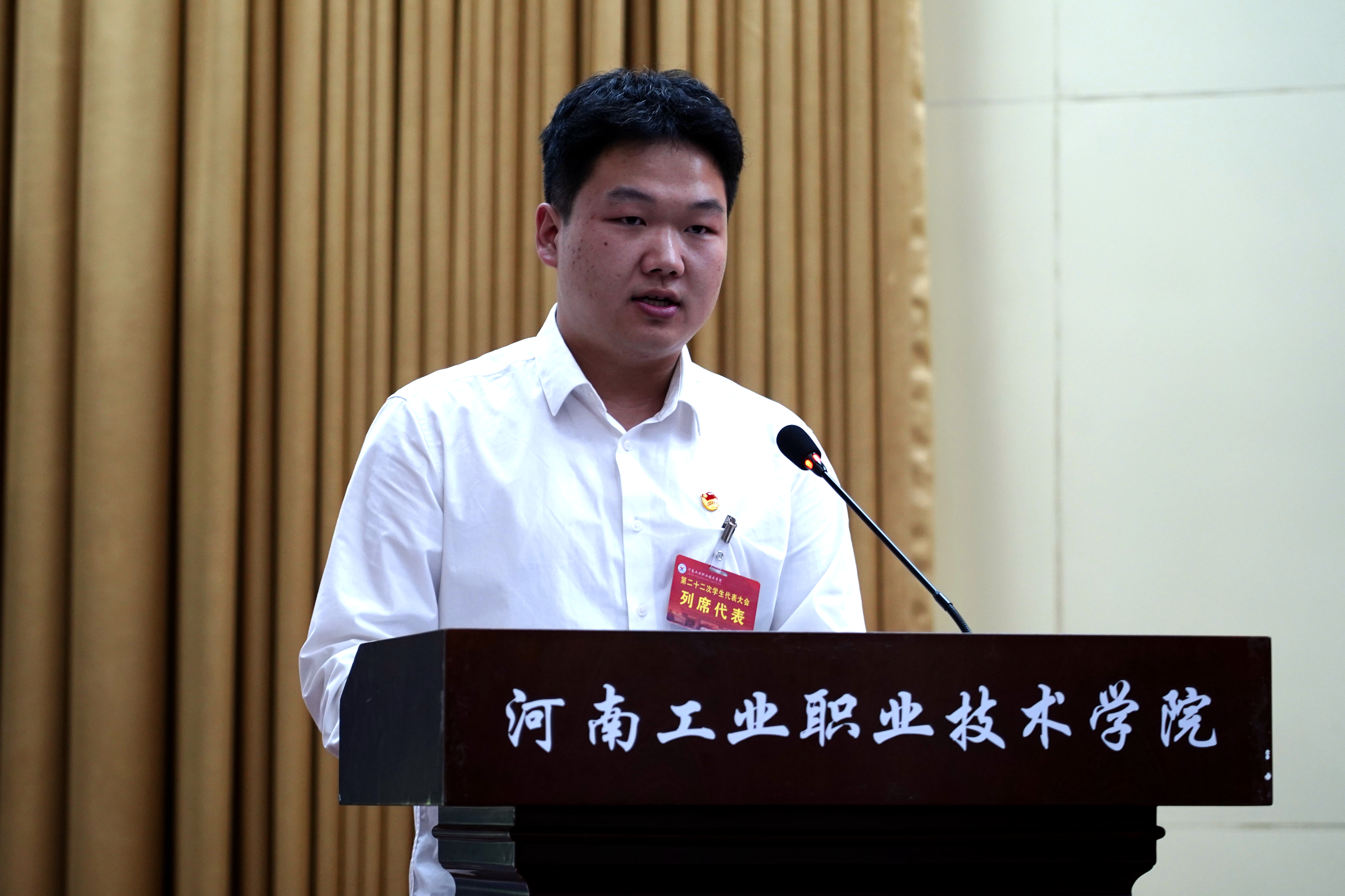 6月25日,河南工业职业技术学院第二十二次学生代表大会在大学术报告厅隆重举行。党委副书记、工会主席王仁伟,副校长马小兵出席大会,党委组织部、党委宣传部、党委学生工作部、党委武装部、教务处、大学生心理健康教育中心、图书馆、团委等相关部门负责同志及各二级学院(中心)党总支书记、副书记、团总支书记、学工科科长及247名学生代表参加会议。大会由团委组宣部部长周珂主持。