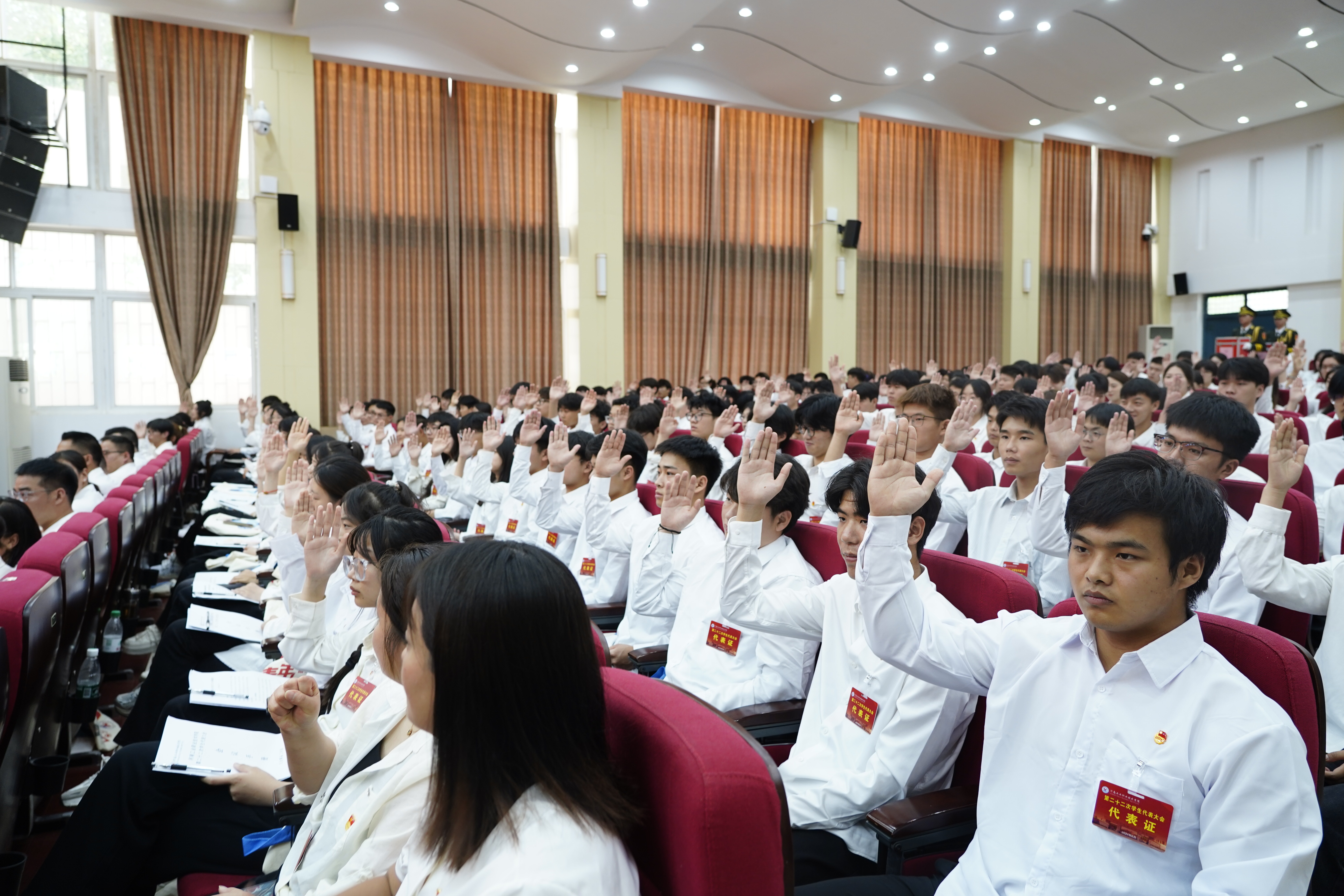 第二十一届学生会主席团成员作题为《持续深化改革 奋发务实进取 团结带领全校青年学生为建设高水平本科层次职业技术大学贡献青春力量》的工作报告,报告全面客观、实事求是地总结了第二十一届学生会过去一年的工作,科学分析了新形势下,我校学生会工作面临的新任务和新要求,明确了今后一个时期我校学生会工作的指导思想、奋斗目标和主要任务。