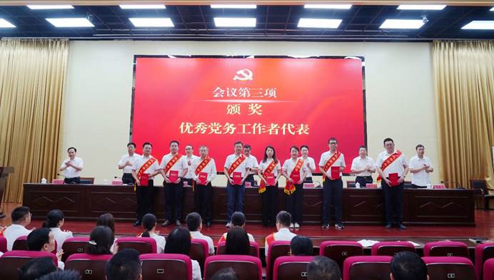 大会在庄严雄壮的国歌声中拉开序幕。党委副书记杜建根宣布了学校党委《关于表彰2023-2024学年优秀共产党员、优秀党务工作者和先进基层党组织的决定》,15个先进基层党组织、148名优秀共产党员和优秀党务工作者受到表彰。与会领导为“两优一先”代表颁奖,优秀党务工作者代表测绘环保工程学院党总支书记、副院长贾杏,优秀共产党员代表建筑工程学院教师刘梓,先进基层党组织代表汽车与航空工程学院党总支学生第二党支部书记朱晓庆分别作了典型发言。