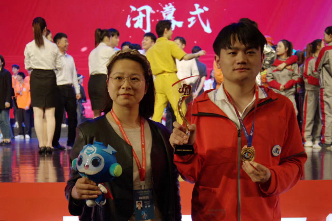 这张照片记录的是河南省第二届职业技能大赛,郝倩老师指导我夺取一等奖后的合影。郝倩老师,她不仅是我们的老师,更是我们的朋友和引路人。她以深入浅出的教学方式,引领我们探索知识的海洋;以无私的付出,关心着我们的成长和进步。她用行动诠释着教育的真谛,让我们在学习的道路上不断前行。如今,当我回首往事,心中充满了感激和敬意。感谢郝倩老师用她的智慧和爱心,为我们点亮了前行的道路;感谢她激励我们追求卓越、勇攀高峰。她是我们永远的榜样和骄傲!