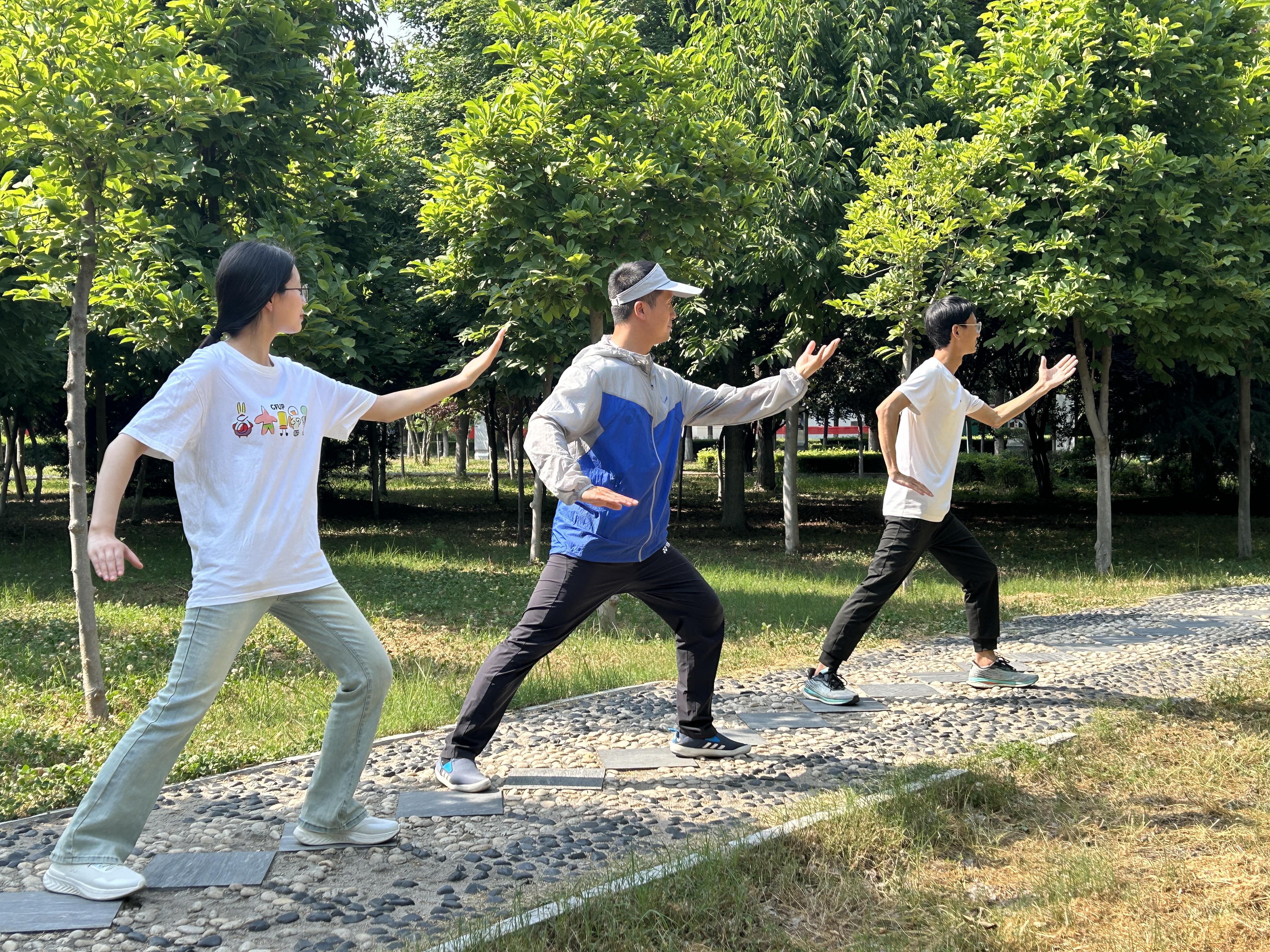 这张照片定格了校园里温馨的一幕。体育老师与我们正在一起打太极。老师动作标准,身姿矫健,耐心地指导着我们。我们全神贯注,认真学习,在一招一式中,展现着对太极的热爱,也传递着我们共同运动的和谐与美好。