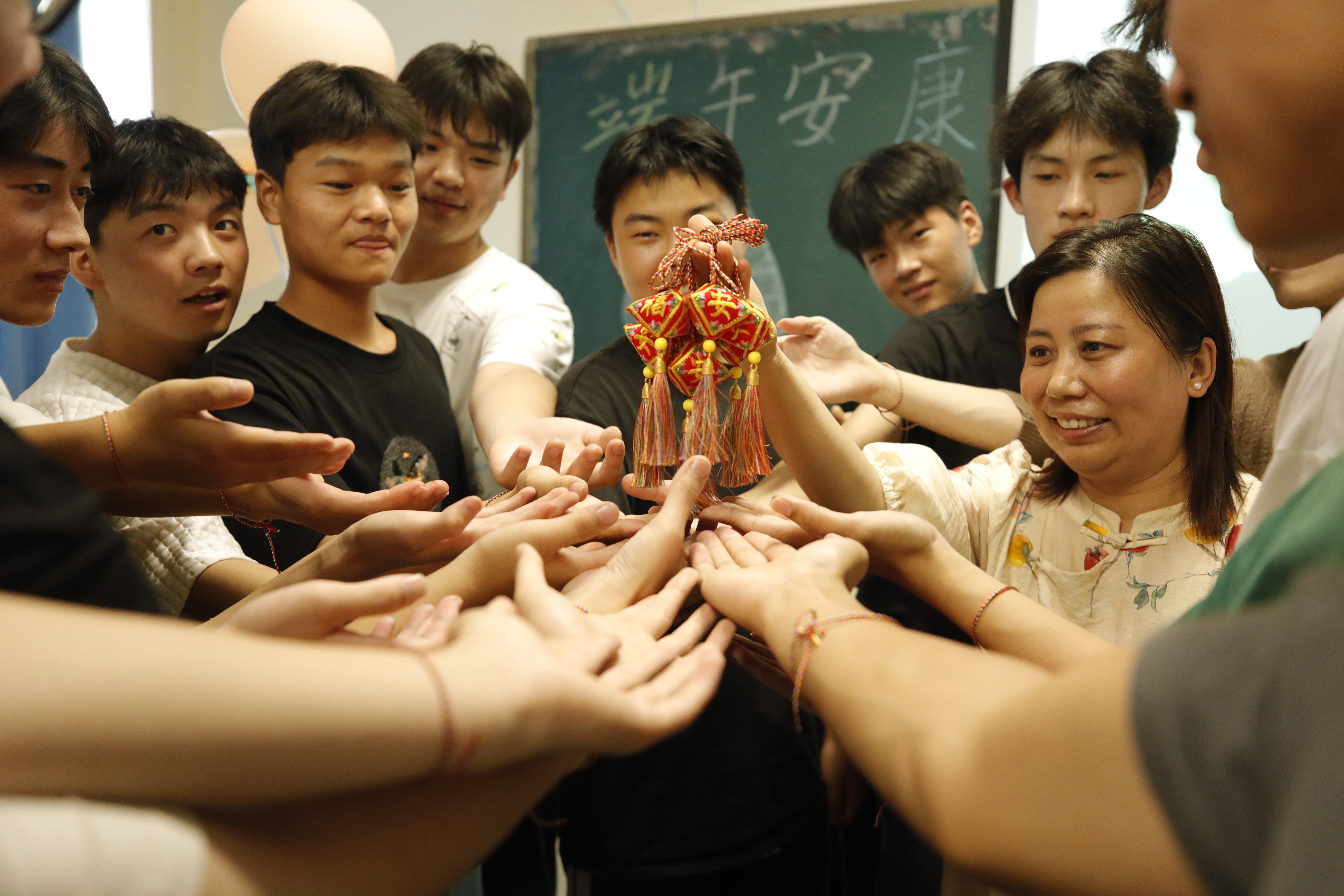 端午节,粽叶香,五彩绳,系安康。活动现场,热闹非凡,同学们欢聚一堂。老师为同学们送上带着浓浓祝福的香包,寓意端午安康,期望同学们平安健康成长成才。师生一起过端午节,温馨亲切。