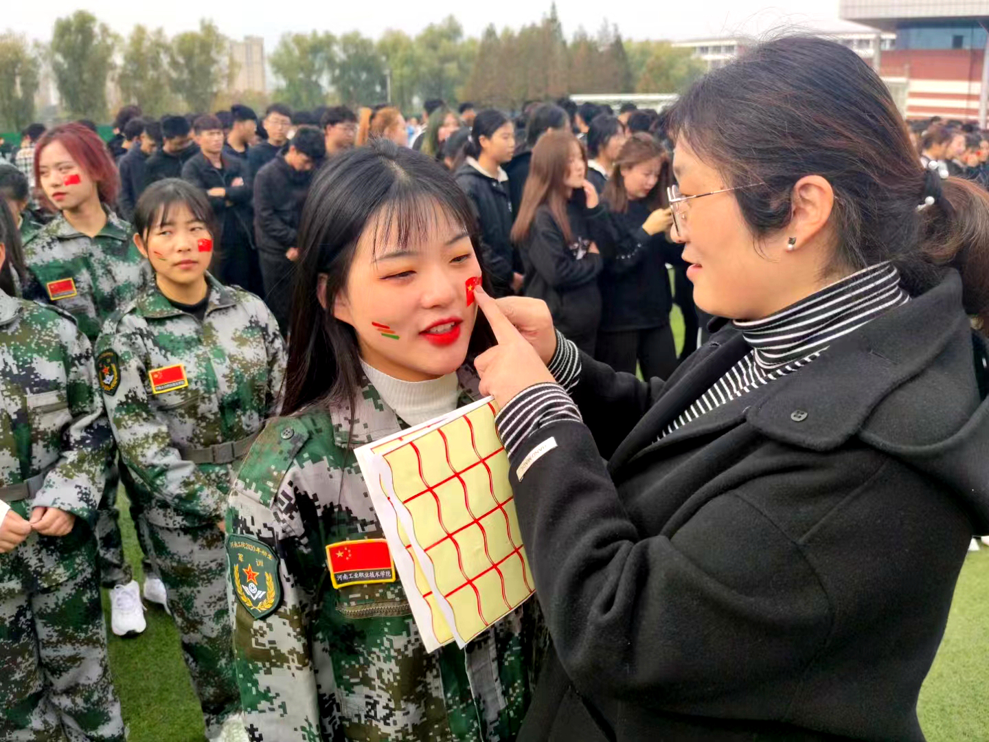 这张照片拍摄的是于慧老师在给参加广播操比赛的同学贴小国旗的场景,于老师总说:“只有爱学生的人,才可以教育学生。”正是带着这种爱的体验,于慧老师始终以无私奉献的工作热情、强烈的责任感和深入的工作作风开拓创新,将激情和汗水播洒在河南工院这片沃土上。