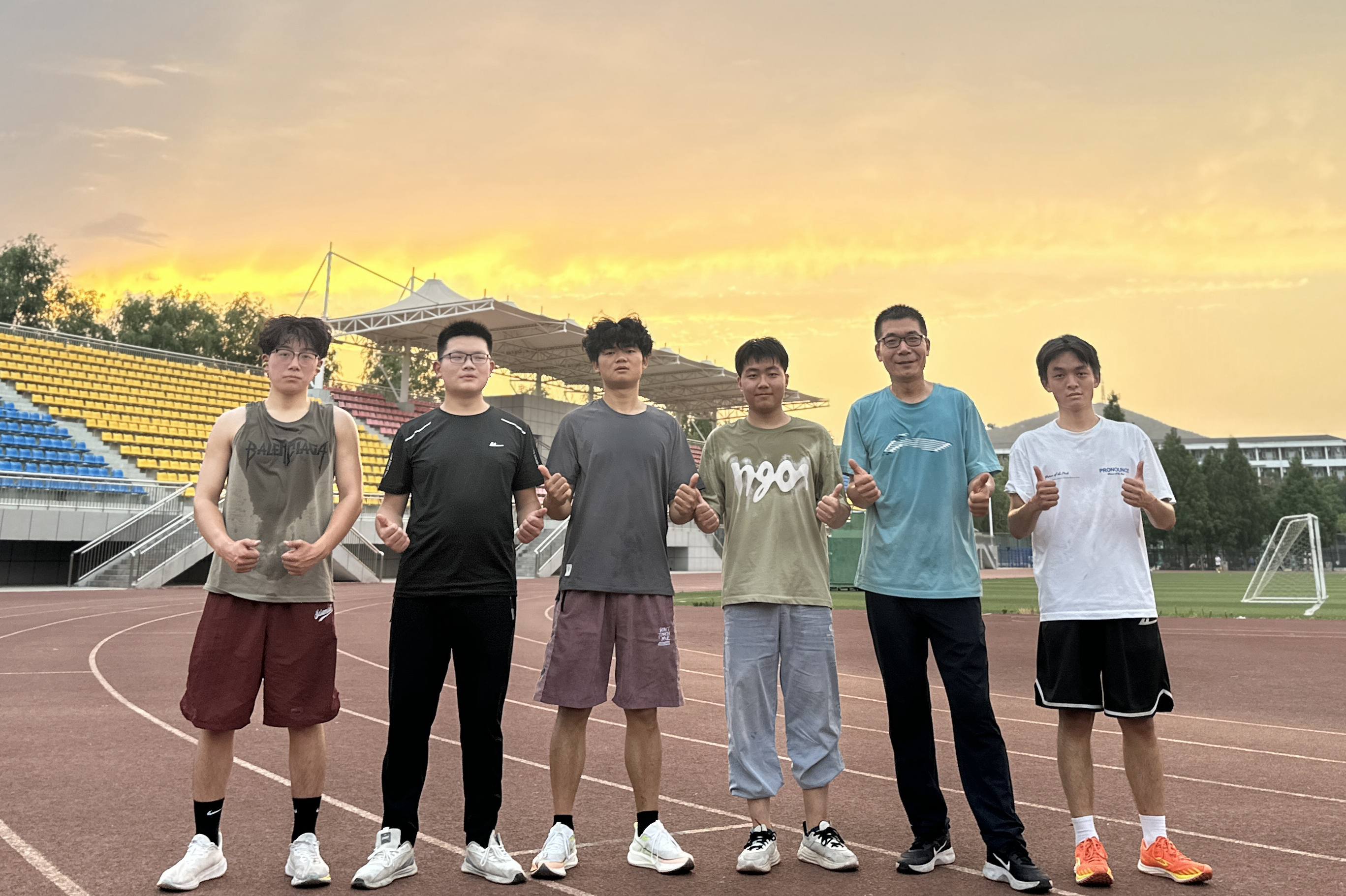 在黄昏的余晖下,班主任王旭老师带领着我们挥洒汗水。我们大家身着运动装备,在跑道上尽情奔跑,欢声笑语回荡在空旷的操场上。晚霞映照着我们的身影,为这温馨和谐的场景增添了一抹美丽的色彩。跑步不仅锻炼了我们的身体,更培养了团队合作精神和相互支持的精神。在这个充满活力的场景中,我们大家都在享受运动带来的快乐与健康。