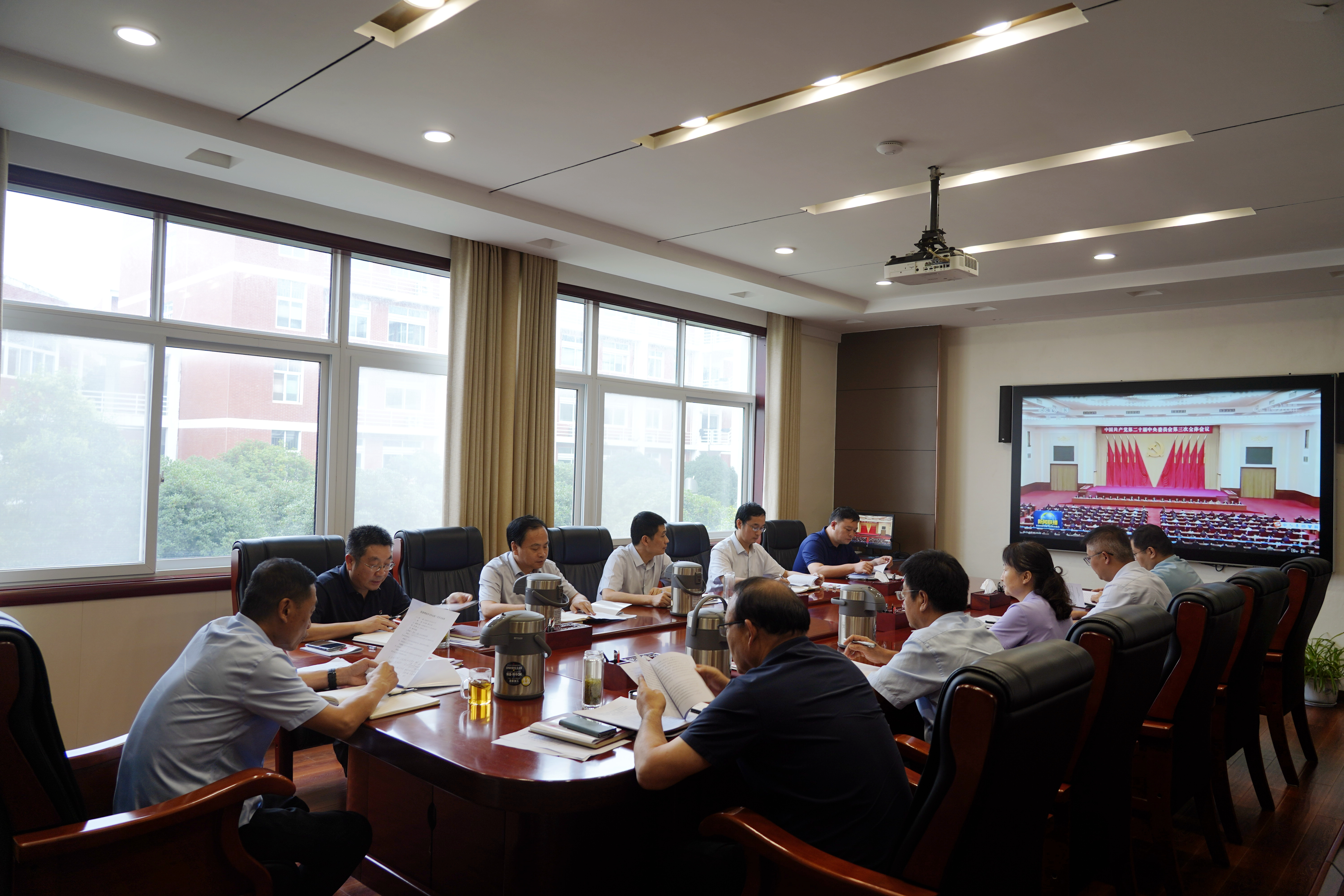 7月19日,学校党委理论学习中心组在孔明路校区第二会议室召开集体学习会,专题学习党的二十届三中全会精神。学习会由党委书记王伟主持,全体党委理论学习中心组成员参加学习。