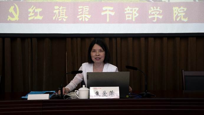 华北水利水电大学党委副书记焦爱萍以《推进治理现代化,促进学校高质量发展》为题,就如何利用治理现代化推动学校高质量发展进行了讲解。