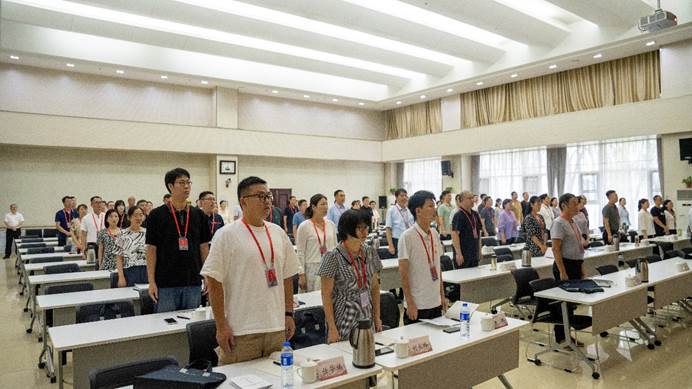 在开班式上,河南红旗渠干部学院副院长王志浩对学校参训学员表示热烈欢迎,介绍了河南红旗渠干部学院,希望参训学员认真听讲、勤于思考、学以致用。副校长贾庆成作动员讲话,他指出,教学工作是学校的中心工作,教学管理人员是做好教育教学工作,推动教学改革发展的中坚力量。通过学习红旗渠精神的深刻内涵和时代价值,继承和发扬艰苦奋斗的精神,助力学校高质量发展。他对培训学习提出要求:一要统一思想,提高认识,切实增强学习的自觉性和主动性。通过学习、交流,进一步更新教育观念,提高综合能力,更好地服务学校教育教学改革与高质量发展的需要。二要明确任务,学以致用,切实增强学习的针对性和实用性。把在培训中学到的理论和知识与自己的工作实际有效结合起来,确保学有所悟、学有所获、学有所成。三要严明纪律,强化管理,切实增强学习的执行力和战斗力。按照学院既定的学习计划认真参加培训,遵守干部学院的各项规章制度,服从安排,听从指挥,统一步调。随后王志浩为本次培训班授旗。