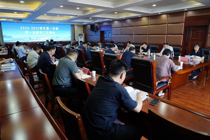 8月31日上午,学校召开新学期第一次教学工作例会。副校长贾庆成出席并主持会议,教务处、学生处、发展规划处、国有资产管理处、质量管理办公室、信息化管理办公室、团委、后勤服务中心负责人,各教学单位、继续教育学院行政负责人,职业发展与就业指导教研室、创新创业教研室、心理健康教育教研室负责人参加会议。