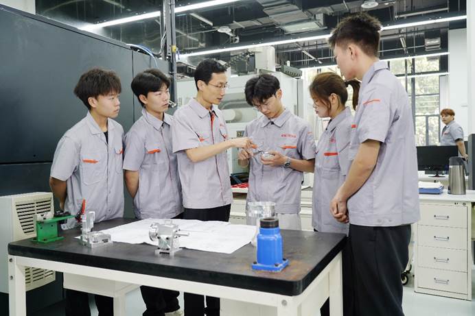 要给学生一杯水,教师应有一桶水。他充分发挥省技能大师工作室的资源优势,通过“传、帮、带”模式,悉心指导学有余力的学生和青年教师,带领他们参与专利研发、项目攻关和技术革新,帮助师生快速融入学习和科研实践。他以职业院校技能大赛为平台,将装备制造业的典型生产案例转化为技能训练的实例,通过项目化、模块化教学,培养学生严谨、细致、务实的职业态度。