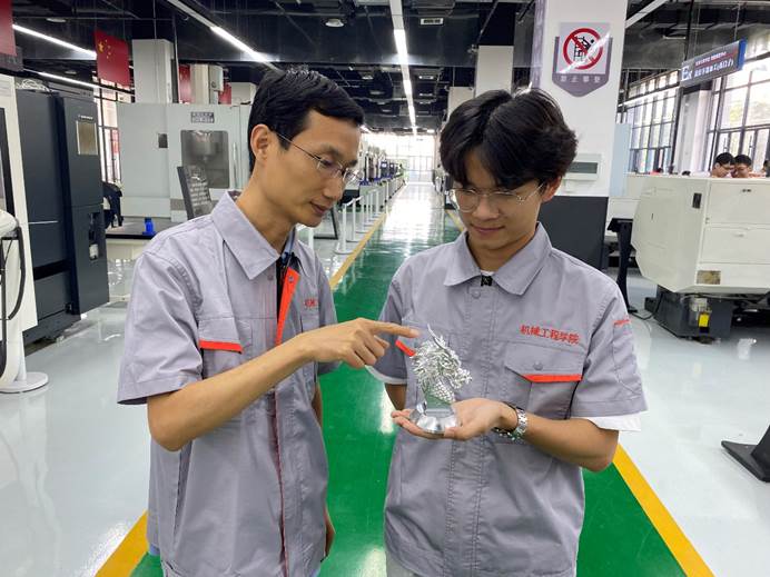 掌握新技术,既要善于学习,更要勇于创新。在专注个人科研的同时,他高度重视学生创新思维和质量观念的培养。他带领学生参与多种型号军品零件的科研试制,与学生共同研究加工方案,通过创新夹具设计、改进加工工艺,与企业合作研发高性能切削刀具,有效解决了产品加工时间长、薄壁件加工变形、刀具损耗快等难题,大幅提升了生产效率和产品质量,为军工单位科研攻关项目的顺利推进提供了有力保障。