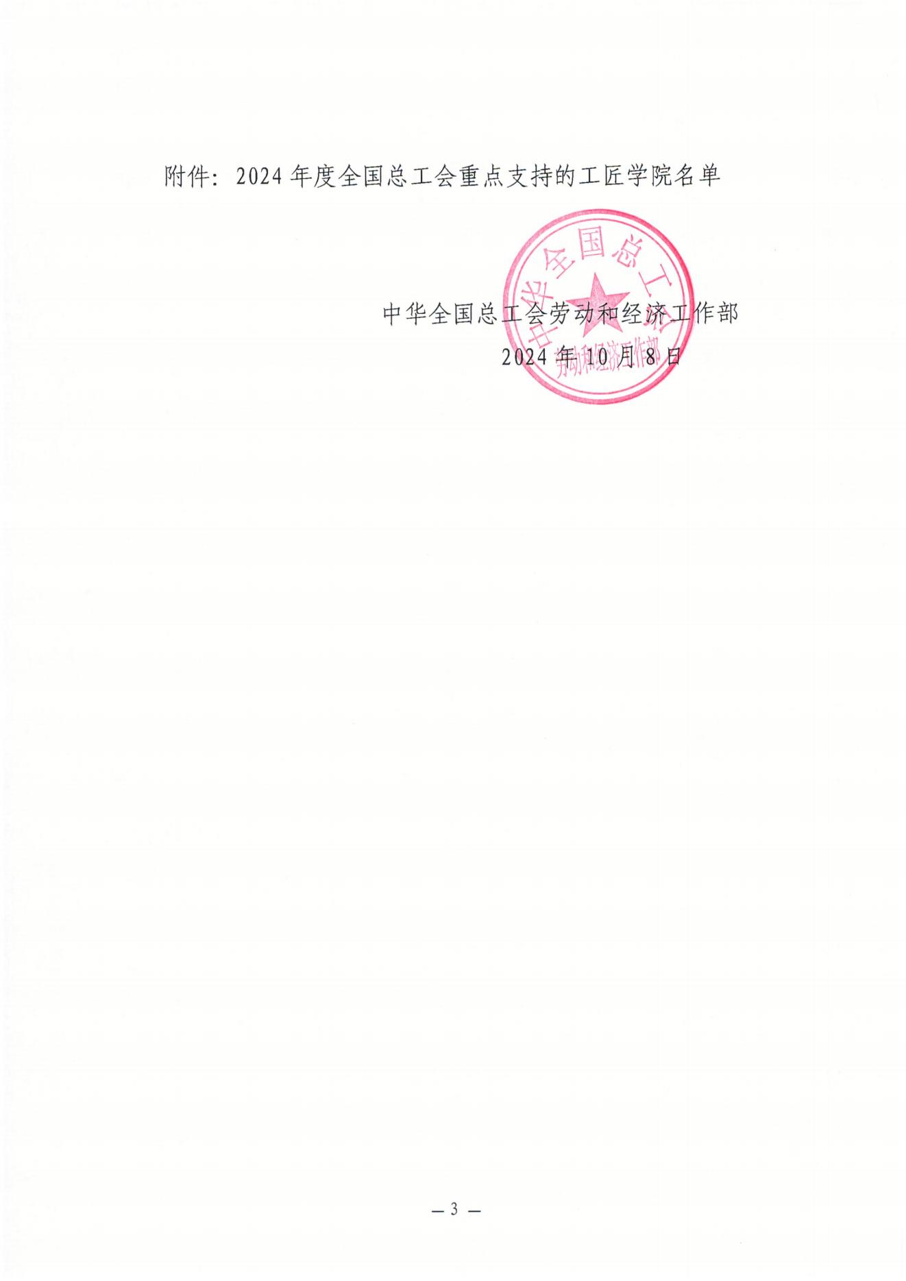 近日,全国总工会公布2024年度重点支持的工匠学院建设点名单,我校与河南省国防邮电工会共建的工匠学院获批。