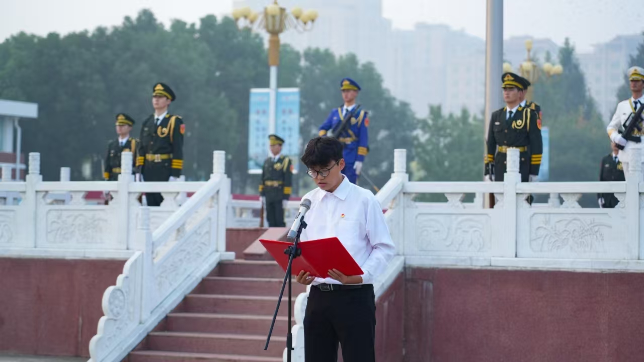 来自智能控制2301班的张鑫浩同学在国旗下发言。他声情并茂地讲述了暑期在安徽小岗村开展社会实践活动的见闻和思考,感受到了乡村发展变化的来之不易,鼓励同学们不仅要学好专业知识,更要勇于担当,敢于实践,将个人理想融入国家发展大局之中。要珍惜学习时间,扎实技能本领,将所学知识与乡村发展实际相结合,为乡村振兴贡献更大力量。