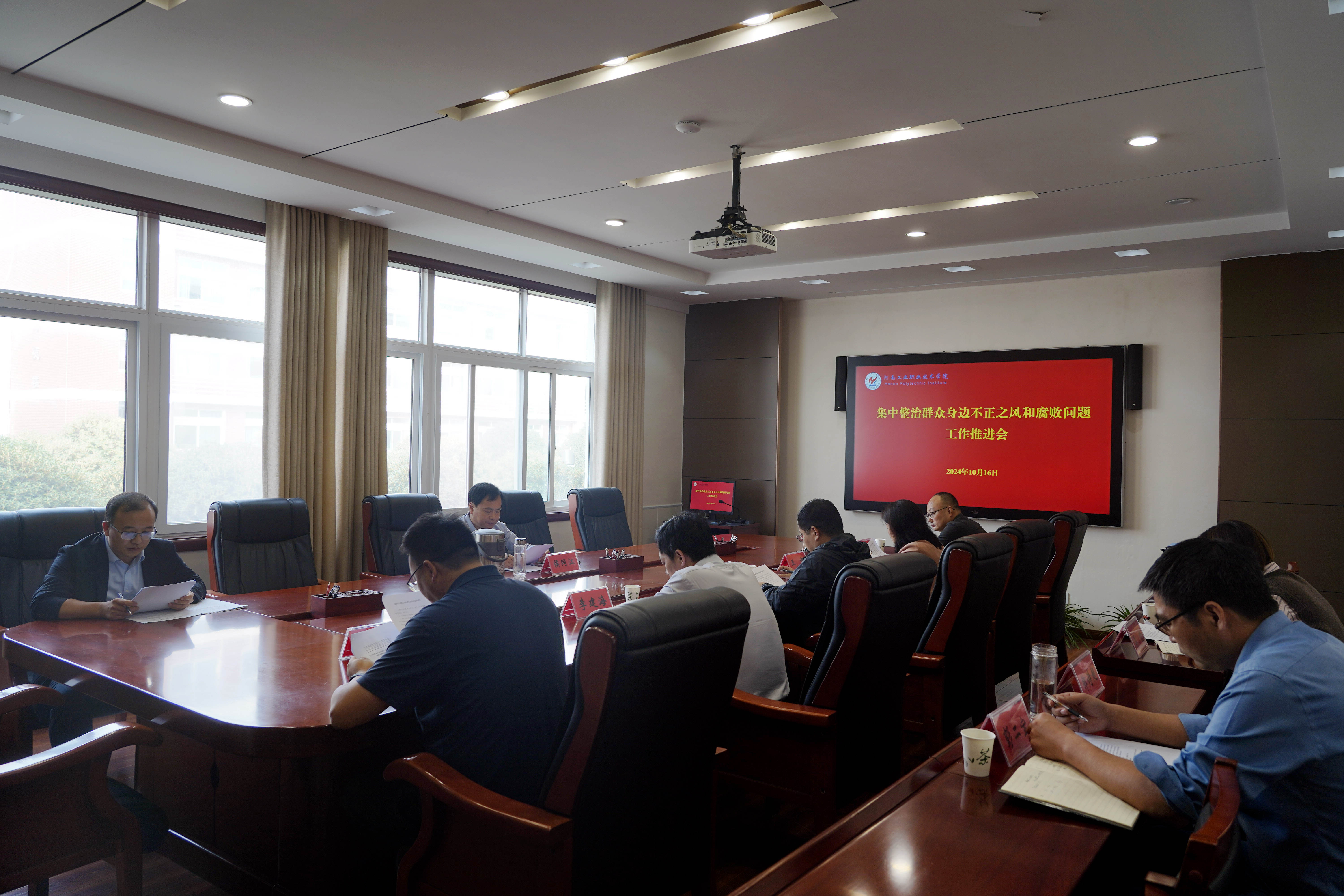 10月16日下午,学校在孔明路校区第二会议室召开集中整治群众身边不正之风和腐败问题工作推进会,党委委员、纪委书记侯同江出席会议并讲话,学校纪委委员和四个专班负责人及相关人员参加会议。