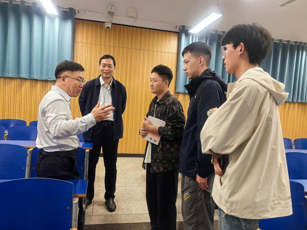 根据河南省委教育工委办公室、河南省教育厅办公室《关于开展2024年度全省高校秋季学期思政课“大听课、大调研”活动的通知》精神,10月17日下午,第十一组专家组河南理工大学马克思主义学院院长郑小九、焦作师范专科高等学校马克思主义学院院长李彩红、焦作师范专科高等学校马克思主义学院副院长原瑞娟、河南理工大学马克思主义学院办公室主任赵光伟一行四人到我校开展听课调研活动。副校长樊有平及党委宣传部、教务处、马克思主义学院等单位负责人和相关工作人员陪同听课。