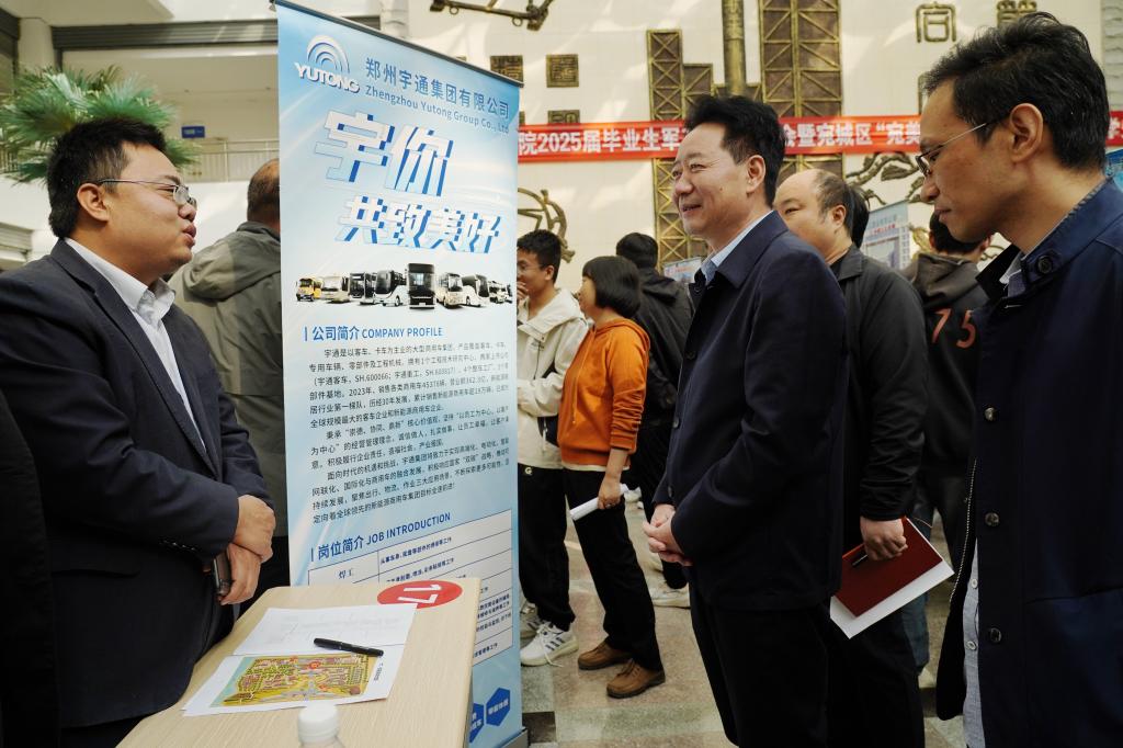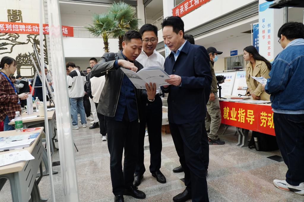 为更好地服务重点军工单位、民口配套企业及有人才招聘需求的先进技术企业,促进我校2025届毕业生高质量充分就业,10月29日,学校联合宛城区人力资源和社会保障局在孔明路校区图文信息楼二楼大厅举办2025届毕业生军工专场双选会暨宛城区“宛美就业”系列招聘活动大学生专场,校长屈保中到招聘会现场进行调研指导。