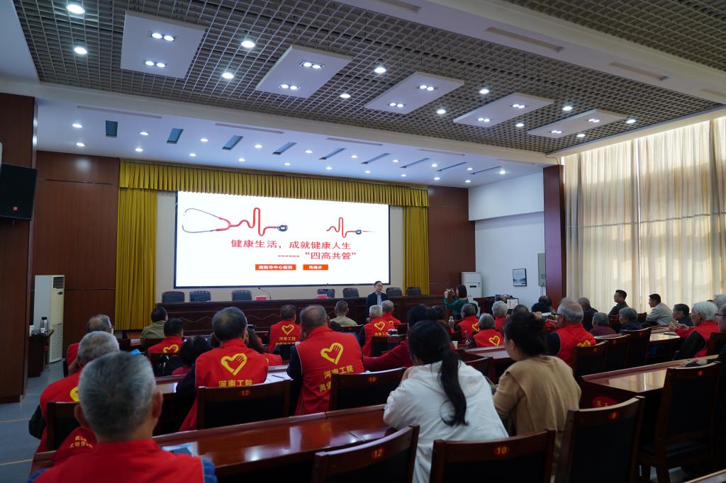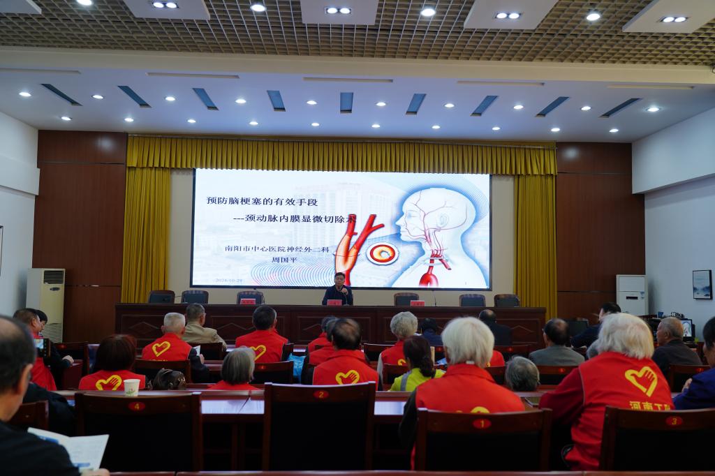 为贯彻落实教育部职业教育与成人教育司和河南省教育厅《关于开展“乐学敬老”联合行动的通知》要求,弘扬中华民族孝亲敬老传统美德,坚持以老年人为中心,扎实推进老年友好型社会建设,营造敬老爱老的良好社会氛围。10月29日离退休工作处邀请南阳市中心医院神经外科主任周国平、心血管内科主任高建步带领专家团队,在学校明德楼第一会议室为退休职工举办“乐学敬老”主题健康科普宣讲活动。活动由离退休工作处副处长田中瑞主持。