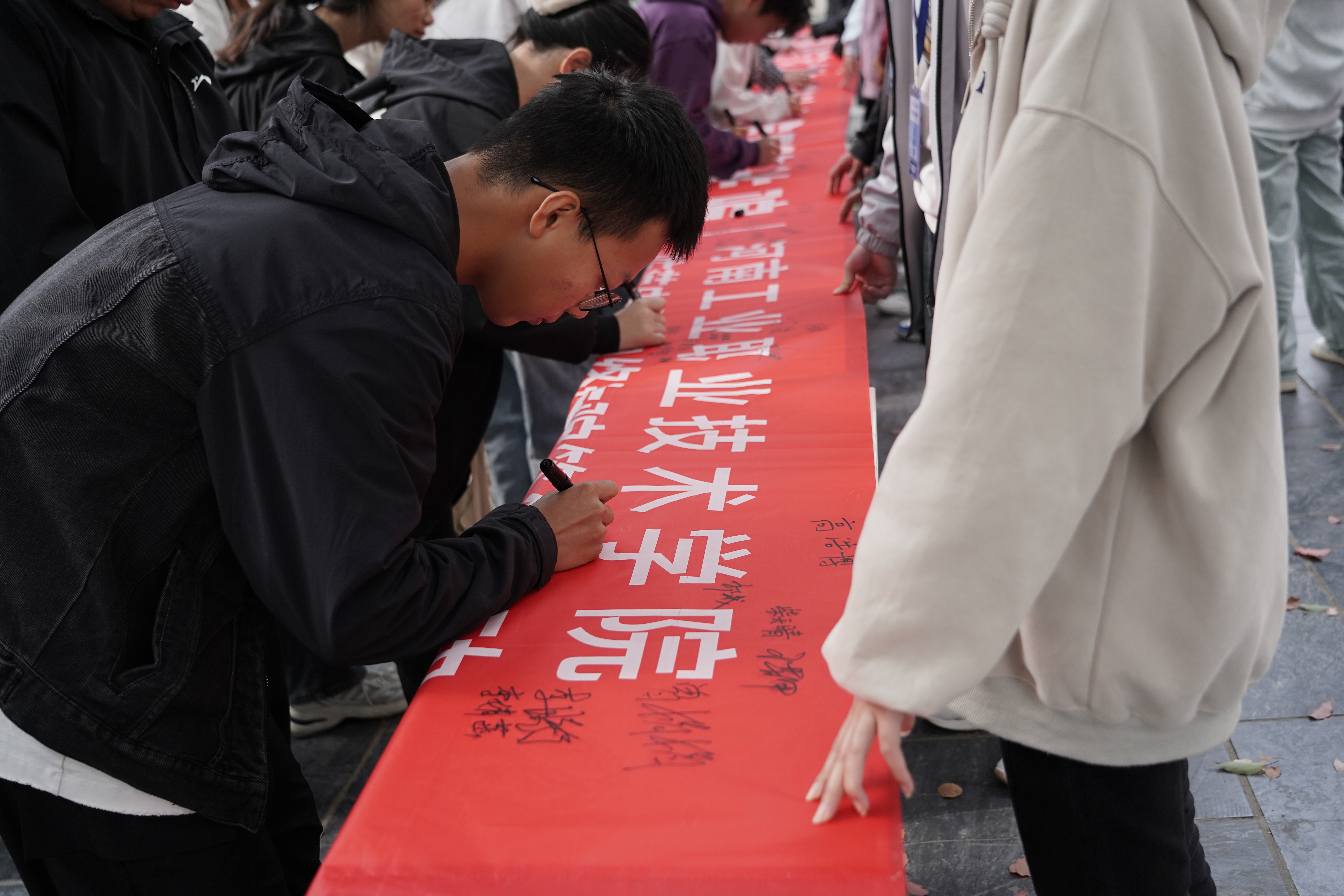 本次活动通过现场布置反诈案例宣传展板、反诈标语横幅、师生反诈倡议书宣传海报等形式营造反诈宣传氛围,并现场讲解反诈知识、发放带有反诈标语的纪念品进行反诈宣传。参与活动师生踊跃在签名横幅上签下自己的名字,表达共同防范诈骗的决心。