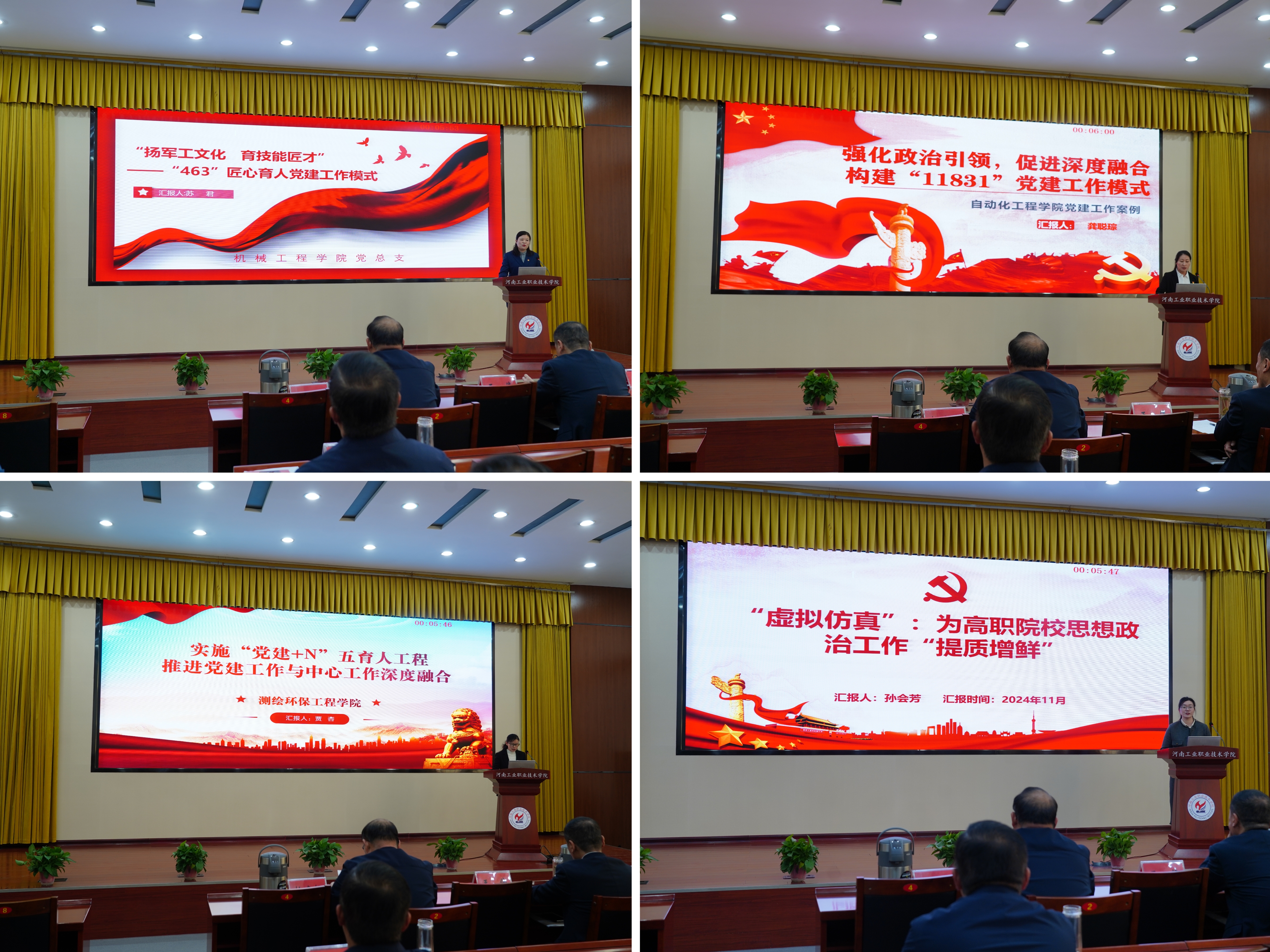 10位选手采取“讲”的方式,以案说理,在案例中凸显问题导向、实践导向,充分体现了各基层党组织破解难题、推动工作的实际举措,展示了党务工作者履职担当、实干有为、奋斗创新的风采,为基层党建不断进步提供了坚实的力量基础,也为更多党务工作者破解工作难题、交流优秀经验、共同成长进步提供了借鉴。经过激烈角逐,自动化工程学院龚聪琮、汽车与航空工程学院王洪燕获一等奖;建筑工程学院孙会芳、自动化工程学院赵丹丹、机械工程学院任燕获二等奖;文化旅游与国际教育学院李诗泉、测绘环保工程学院贾杏、机械工程学院苏君、经济贸易学院袁晓冬、电子信息工程学院张燕豪获三等奖。