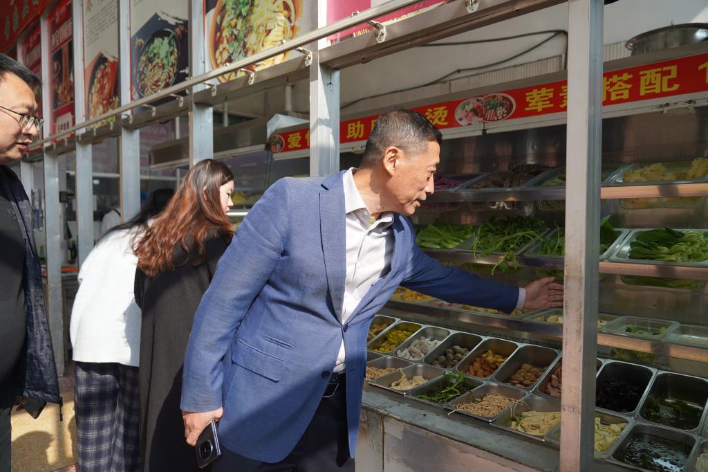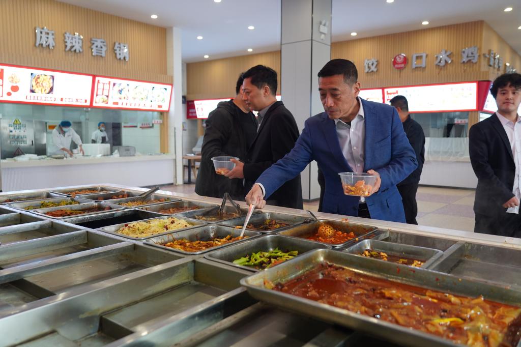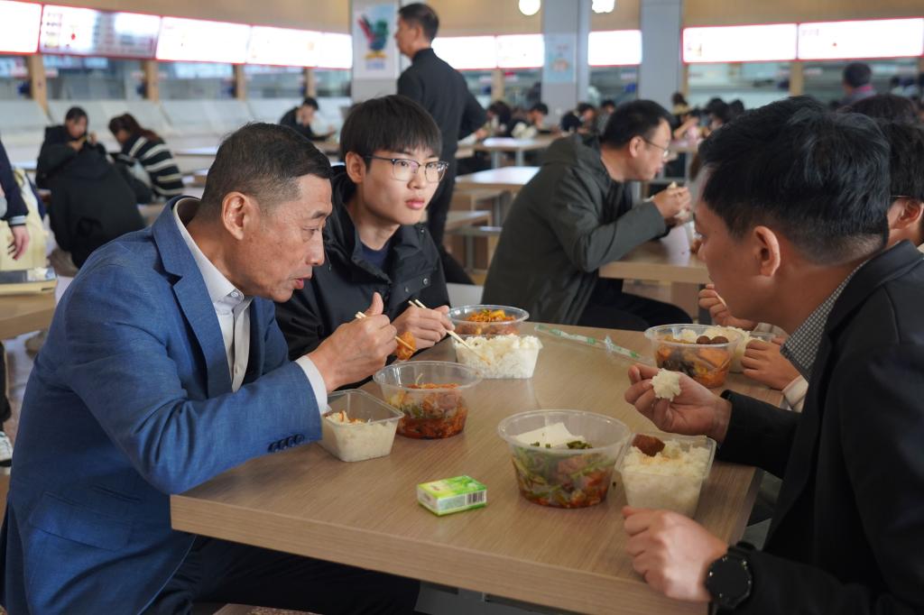 检查结束后,王伟在学生食堂与学生共进午餐。在用餐过程中,他与学生亲切交流,详细了解学生的生活、学习及业余时间安排的情况,询问学生对学校各方面工作的意见和建议,并嘱咐同学们要均衡饮食,注意营养搭配,践行“光盘行动”。