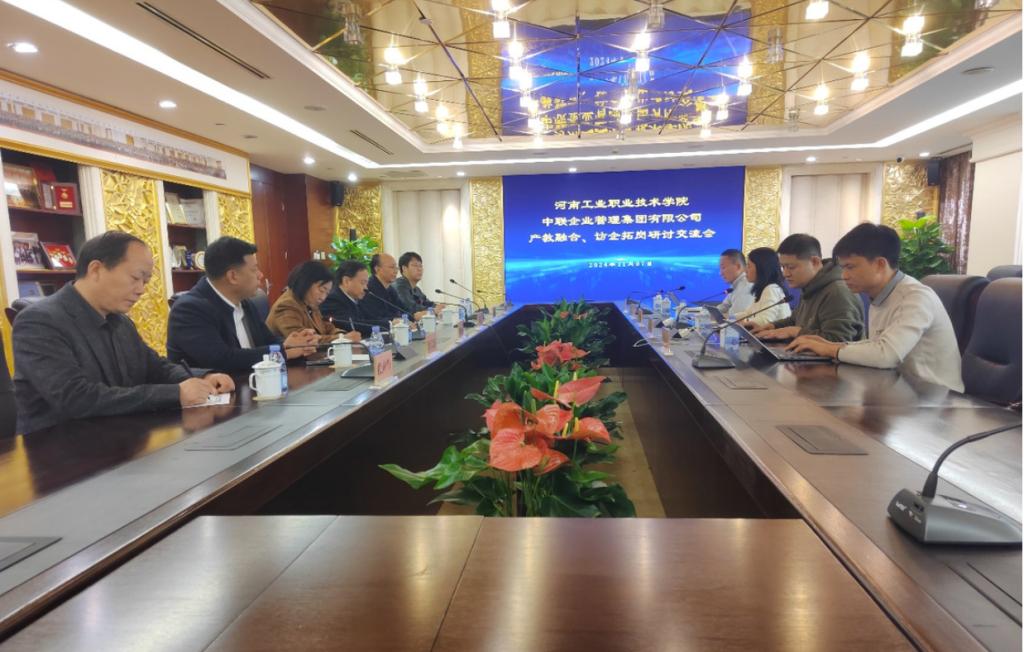 11月7日上午,侯同江一行至中联集团教育科技有限公司进行产教融合、访企拓岗走访交流。在中联集团副总裁孙红菊、赵志刚的陪同下,侯同江一行参观了中联集团数字化体验中心,详细了解企业的生产流程、技术创新和人才需求情况,共同探讨了“新双高”建设、新质生产力与电子商务专业的融合措施、先进制造业商务大数据中心建设、产业+数据的生产性实践中心建设、数字资产确认等内容。校企双方畅所欲言,企业对学校未来发展充满信心,双方愿意在产业的前沿,大赛的前沿,产教融合的前沿深入合作,做出更多成绩,实现双赢。