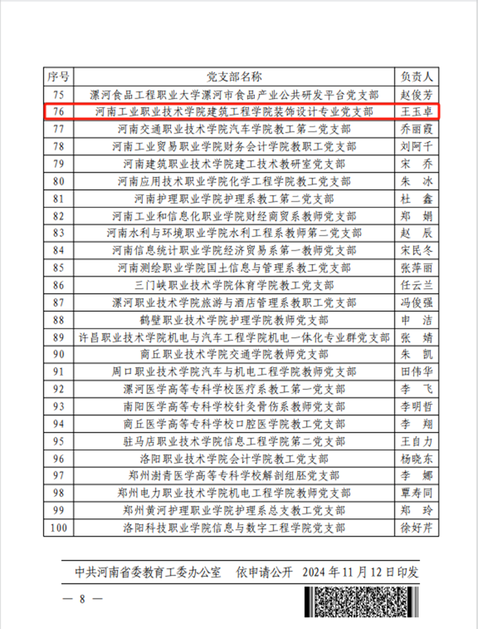 近日,省委教育工委公布了全省高校“双带头人”教师党支部书记“强国行”专项行动团队名单,我校建筑工程学院装饰设计专业党支部成功入选。