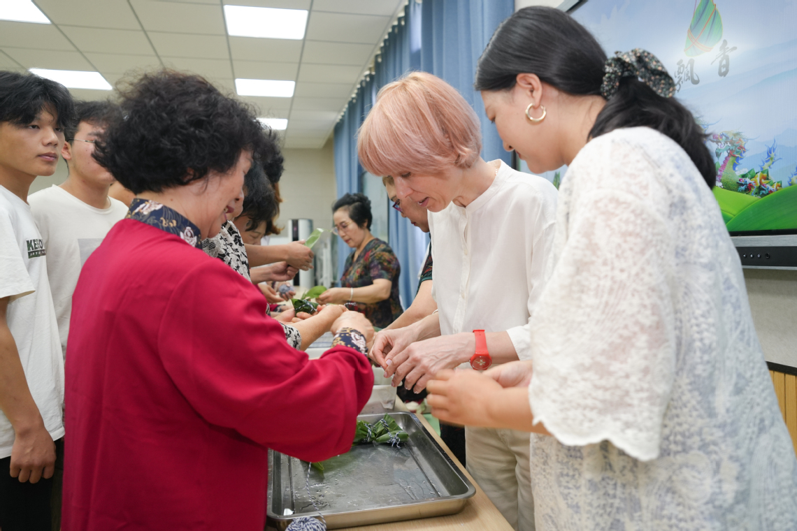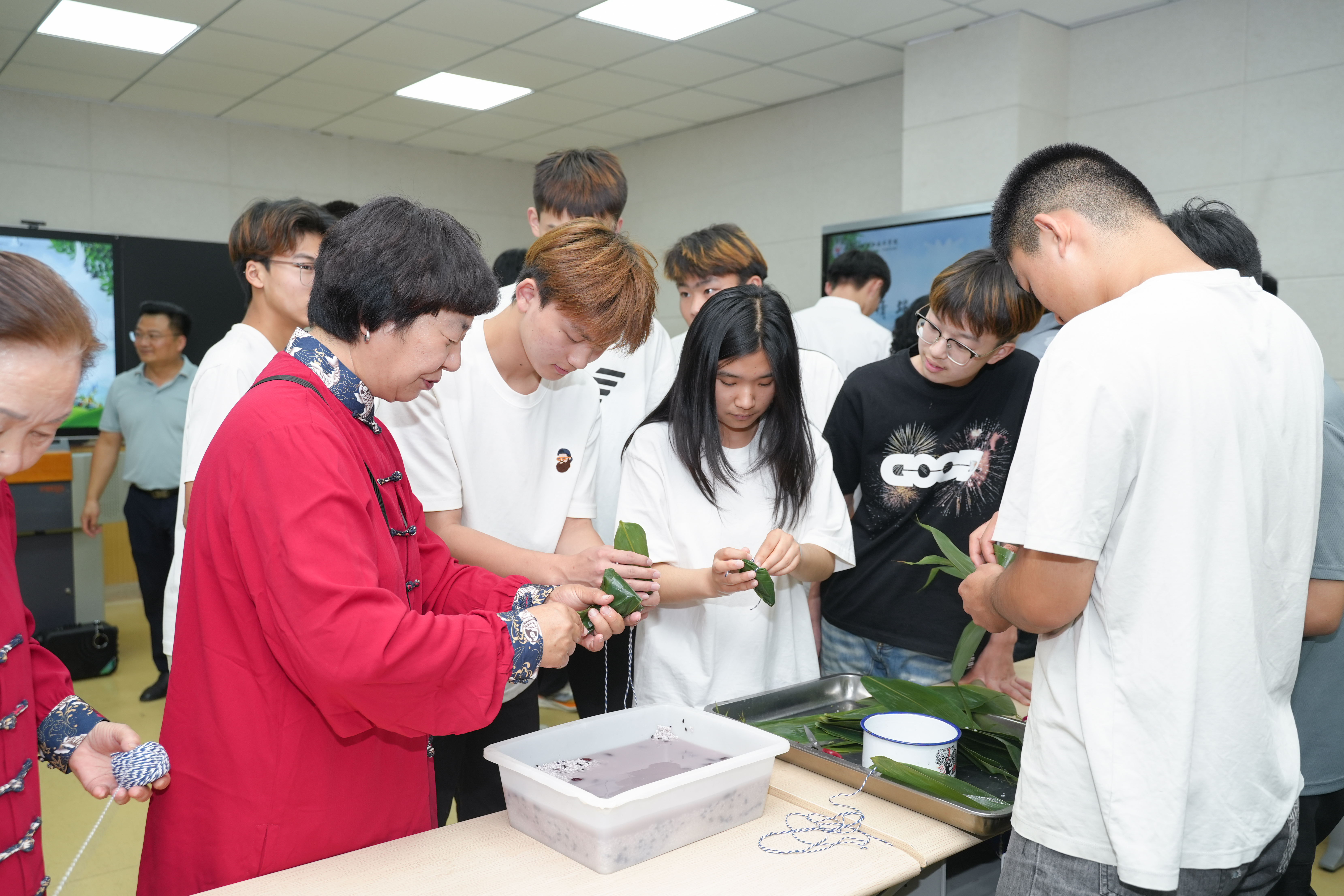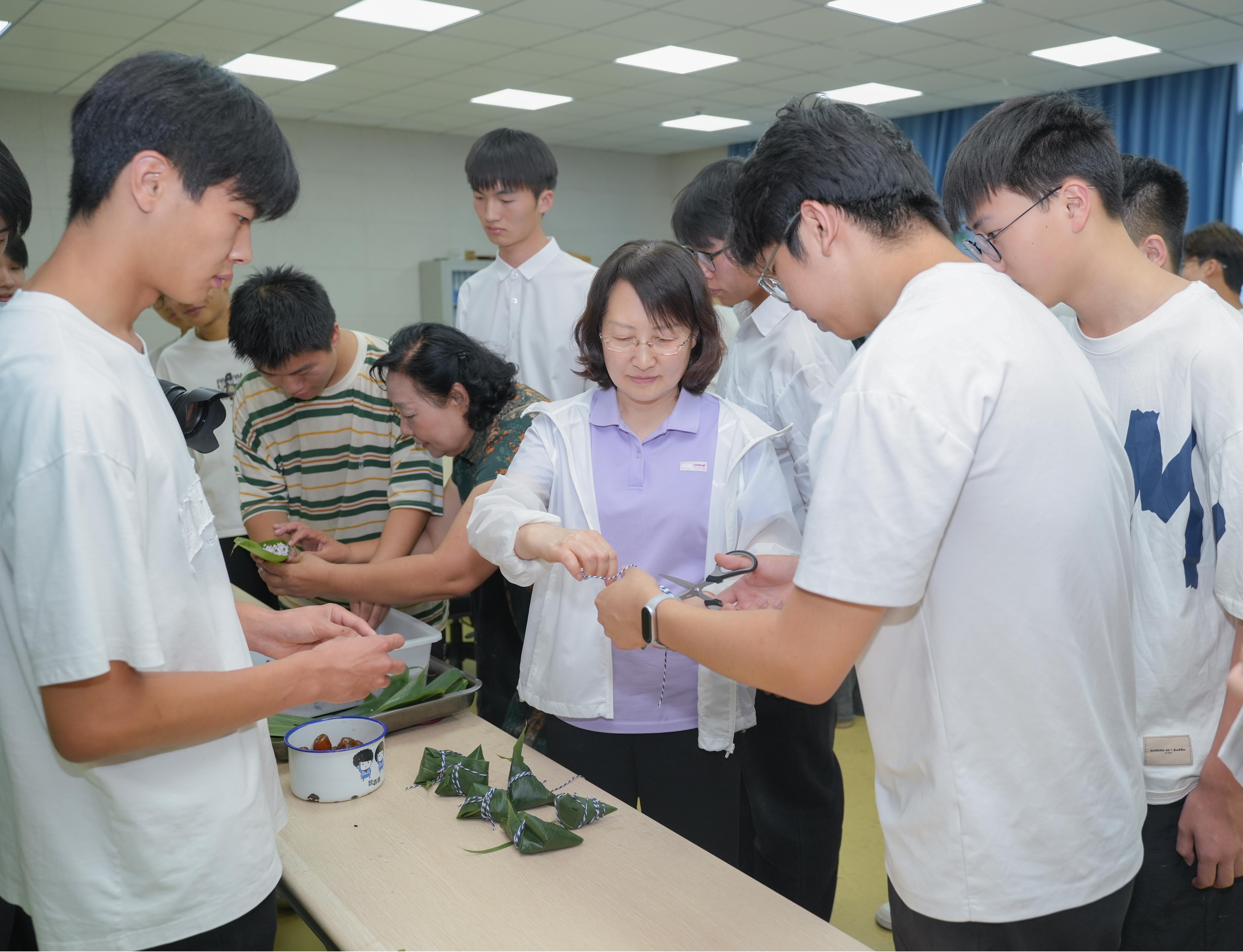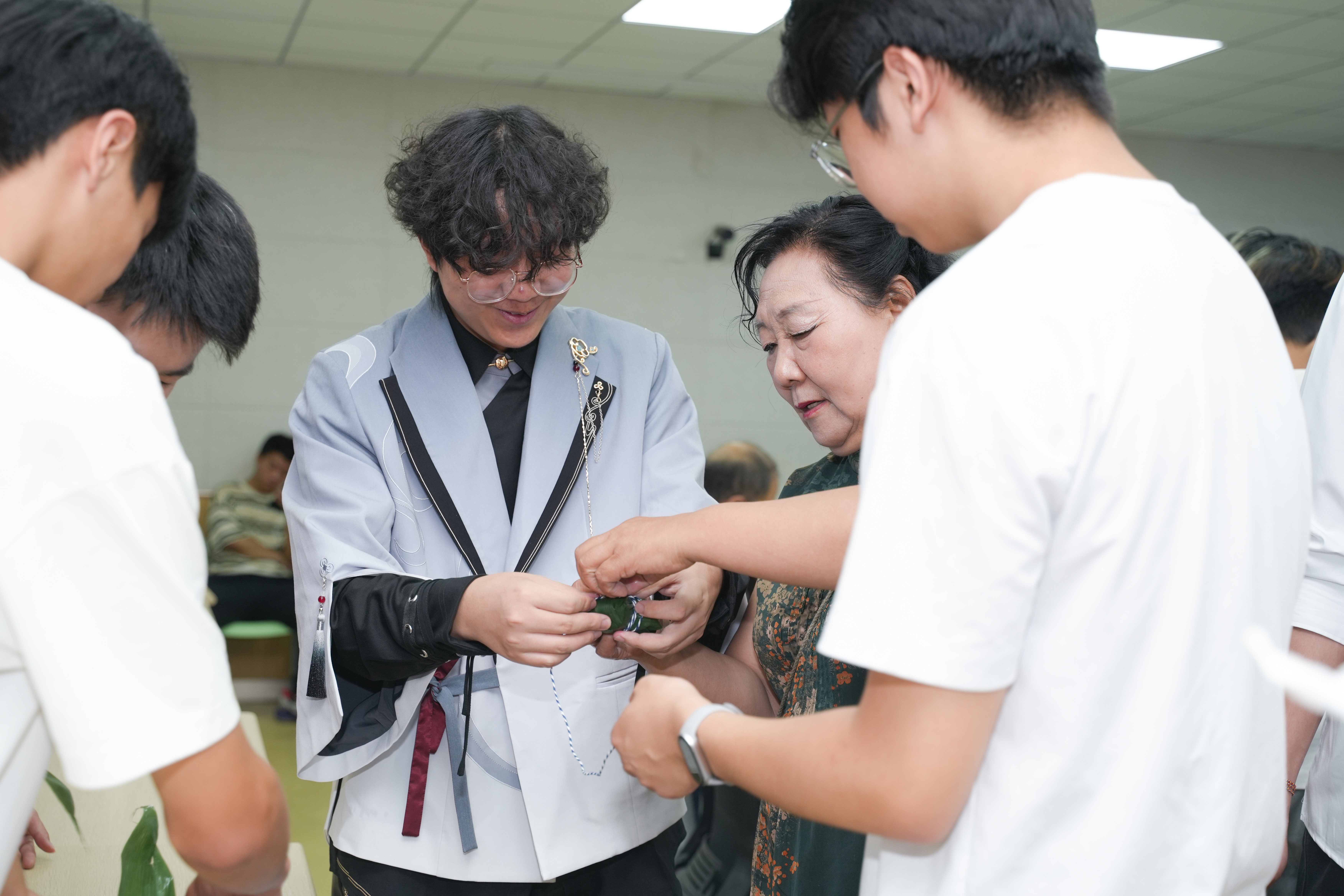 当热气腾腾的粽子端上餐桌,师生们围坐分享劳动成果。甜粽裹蜜枣,咸粽包鲜肉,不同口味的粽子承载着相同的文化记忆。“端午佩香囊,辟邪迎吉祥。”活动尾声,学生代表将亲手缝制的香囊赠送给离退休教师及外籍教师代表。这些香囊造型精美,内装艾叶、丁香等香料,不仅有着驱虫辟邪的寓意,更承载着学生们的美好祝福。