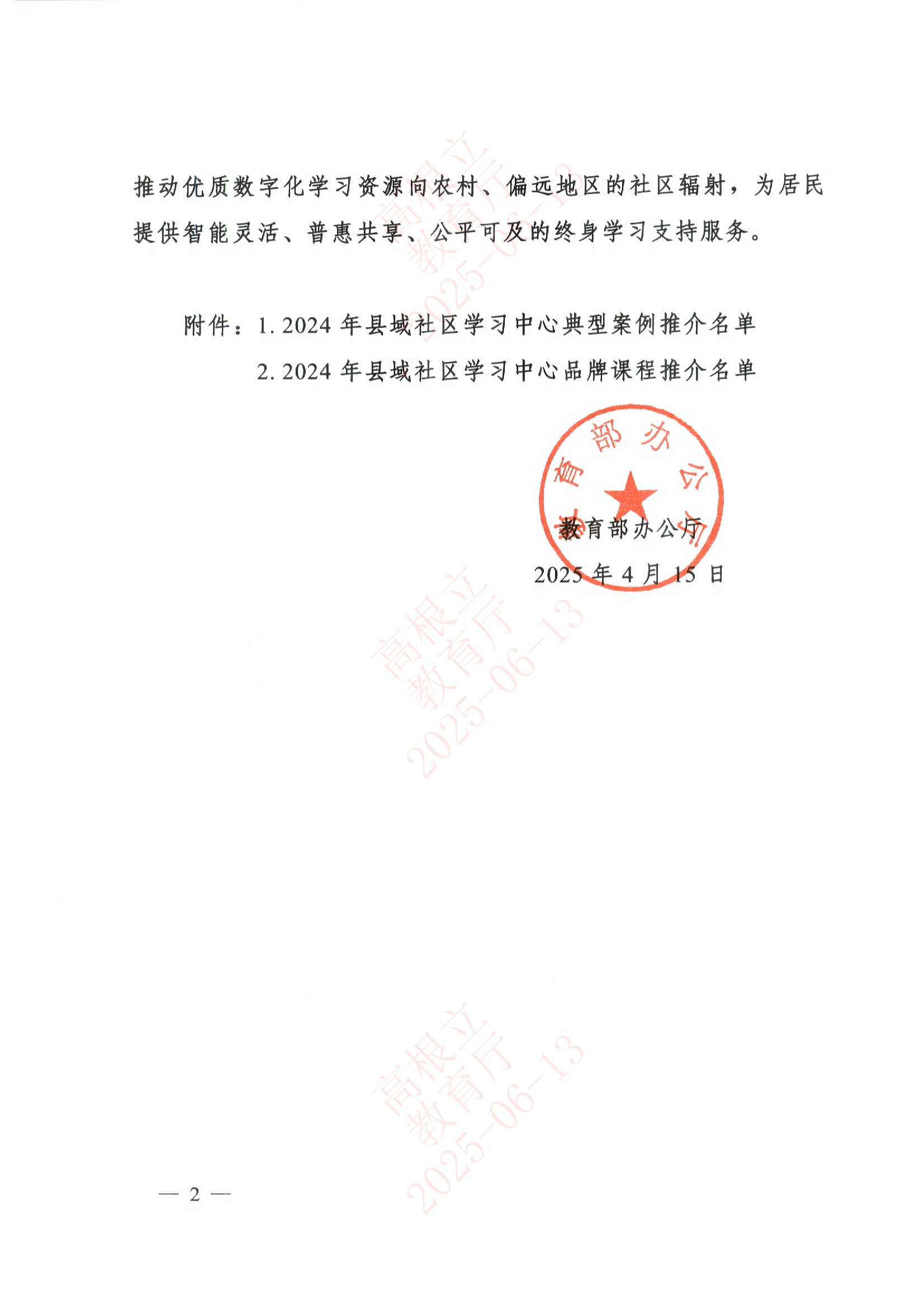 此次两门课程的入选,是教育部对我校社区教育课程质量的充分肯定。未来,学校将以此为契机,进一步优化课程体系,加强师资队伍建设,不断提升社区教育的教学质量和服务水平,打造更多优质社区教育品牌课程,为推动县域社区教育发展、构建终身学习体系持续发力,让更多社区居民受益于丰富多元的教育资源。
