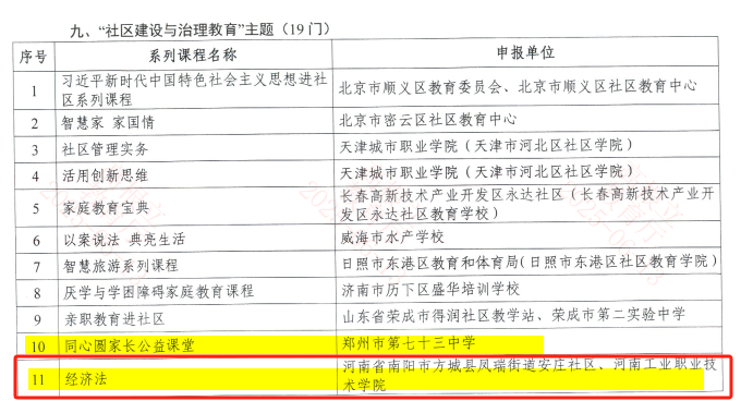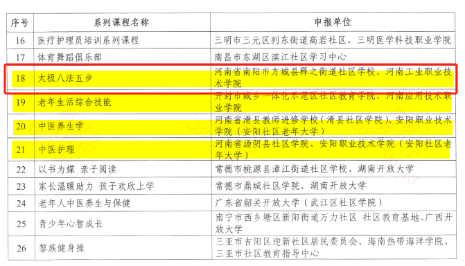 近日,教育部公布了《2024年县域社区学习中心典型案例和社区教育品牌课程推介名单》(教职成函〔2025〕8号),我校申报的《太极八法五步》《经济法》两门课程成功入选教育部“县域社区学习中心品牌课程”。