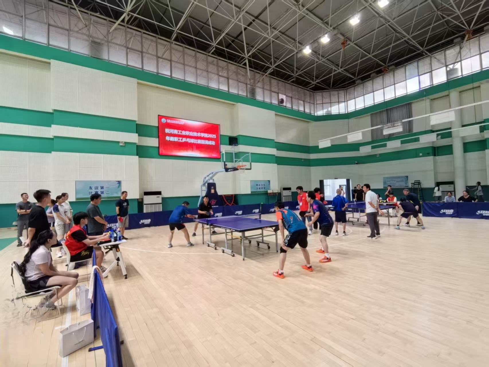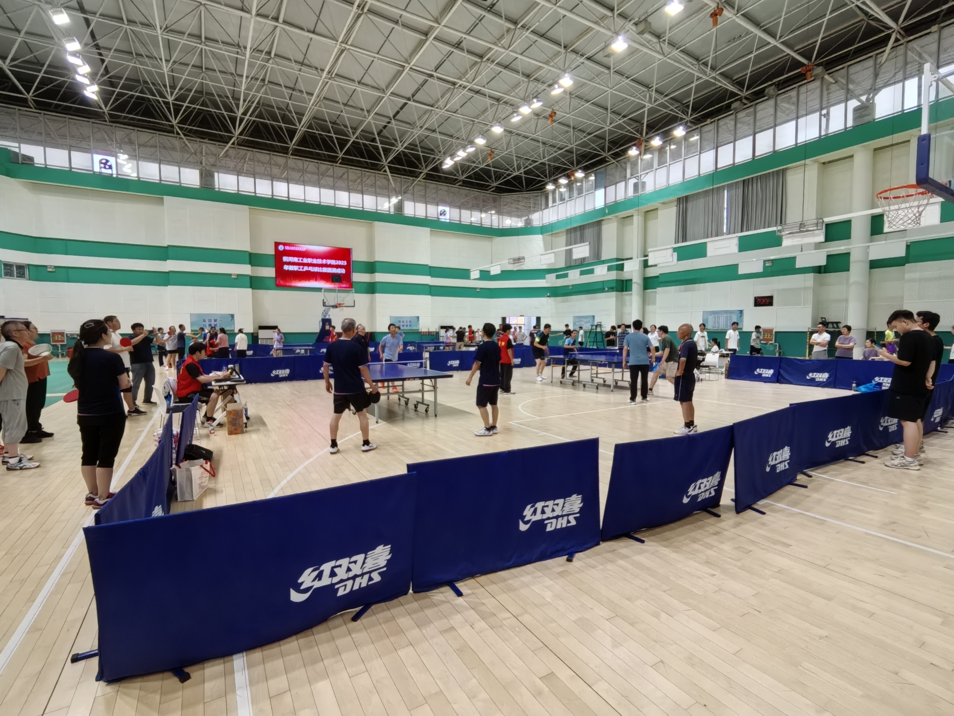 6月26日,学校2025年教职工乒乓球比赛在体育馆圆满落幕。本次比赛得到广大教职工的热情参与,全校来自各分工会的10支代表队100余名教职工参与了比赛。
