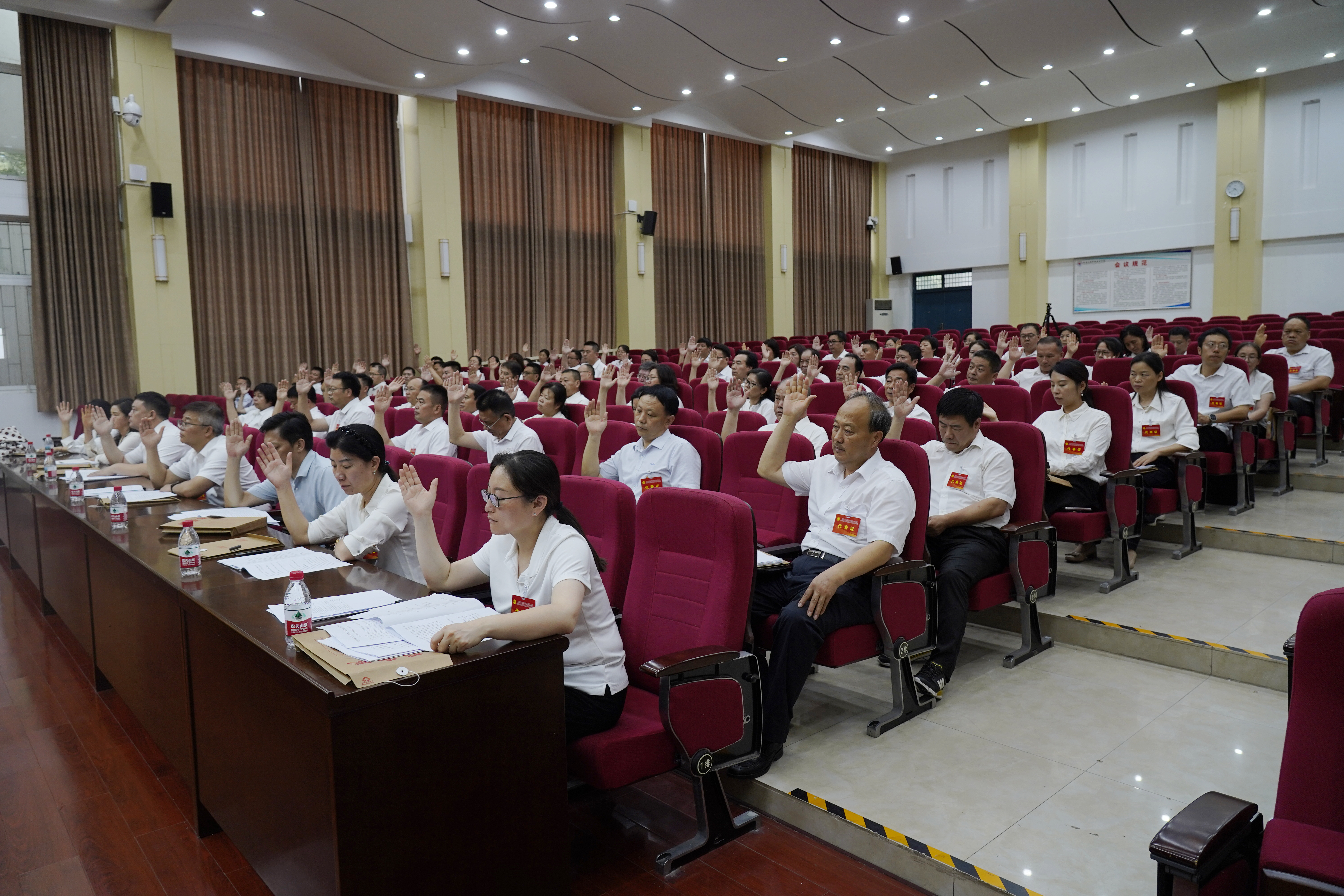 7月1日,学校第三届教职工代表大会暨工会会员代表大会第四次会议在孔明路校区大学术报告厅举行。校领导屈保中、马小兵、贾庆成、朱成俊、冯书丽、王宏颖和百余名代表参加会议。