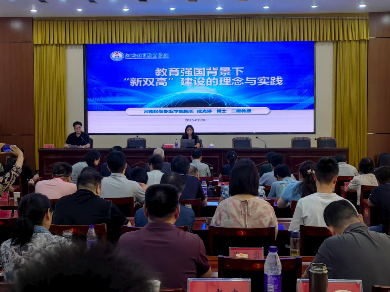 在政策引领维度,教育部职教专家、河南工业职业技术学院副校长贾庆成教授深入解读《“双高”视域下高职院校的专业群建设》,系统梳理职业教育发展脉络,剖析专业群建设的逻辑起点与核心任务,并分享了学校“双高”专业群建设的实战经验;河南经贸职业学院院长成光琳教授深度解析《教育强国背景下职业院校高质量发展的政策与行动》,聚焦“新双高”建设的时代背景、理论框架与实践路径,并强调了教育科研的战略支撑作用。