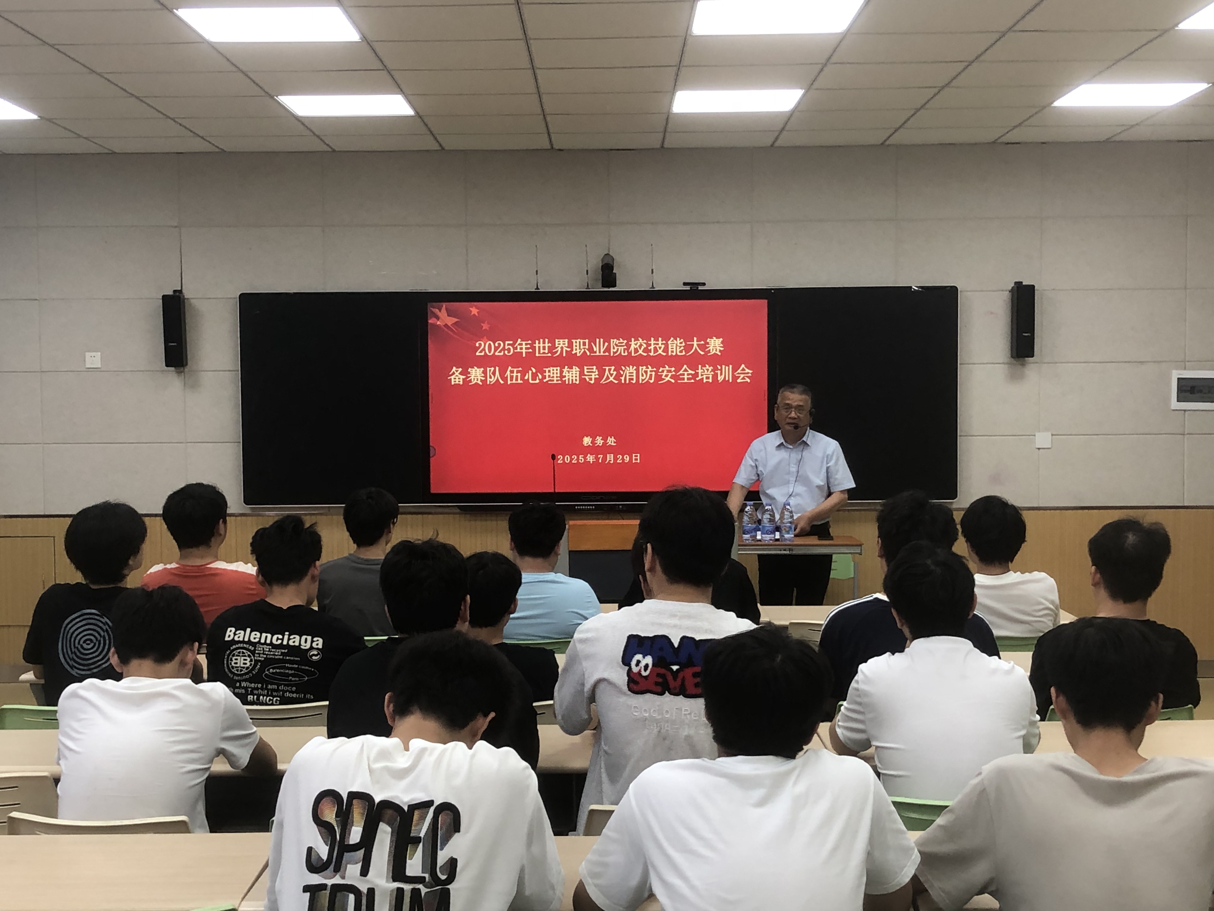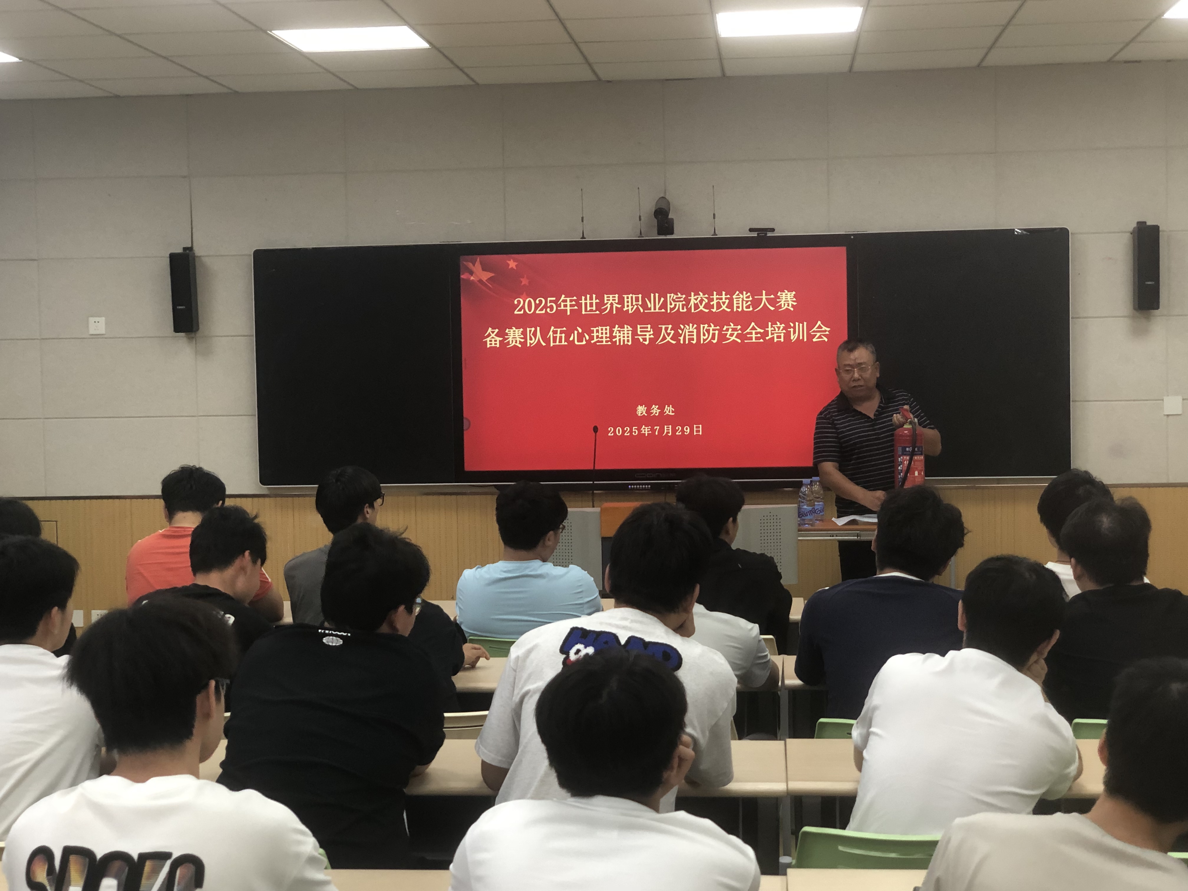 为帮助2025年世界职业院校技能大赛参赛选手舒缓备赛压力、缓解紧张情绪,增强师生安全意识,确保备赛工作顺利进行,7月29日上午,教务处在X3207教室举办备赛队伍心理辅导及消防安全专题培训。