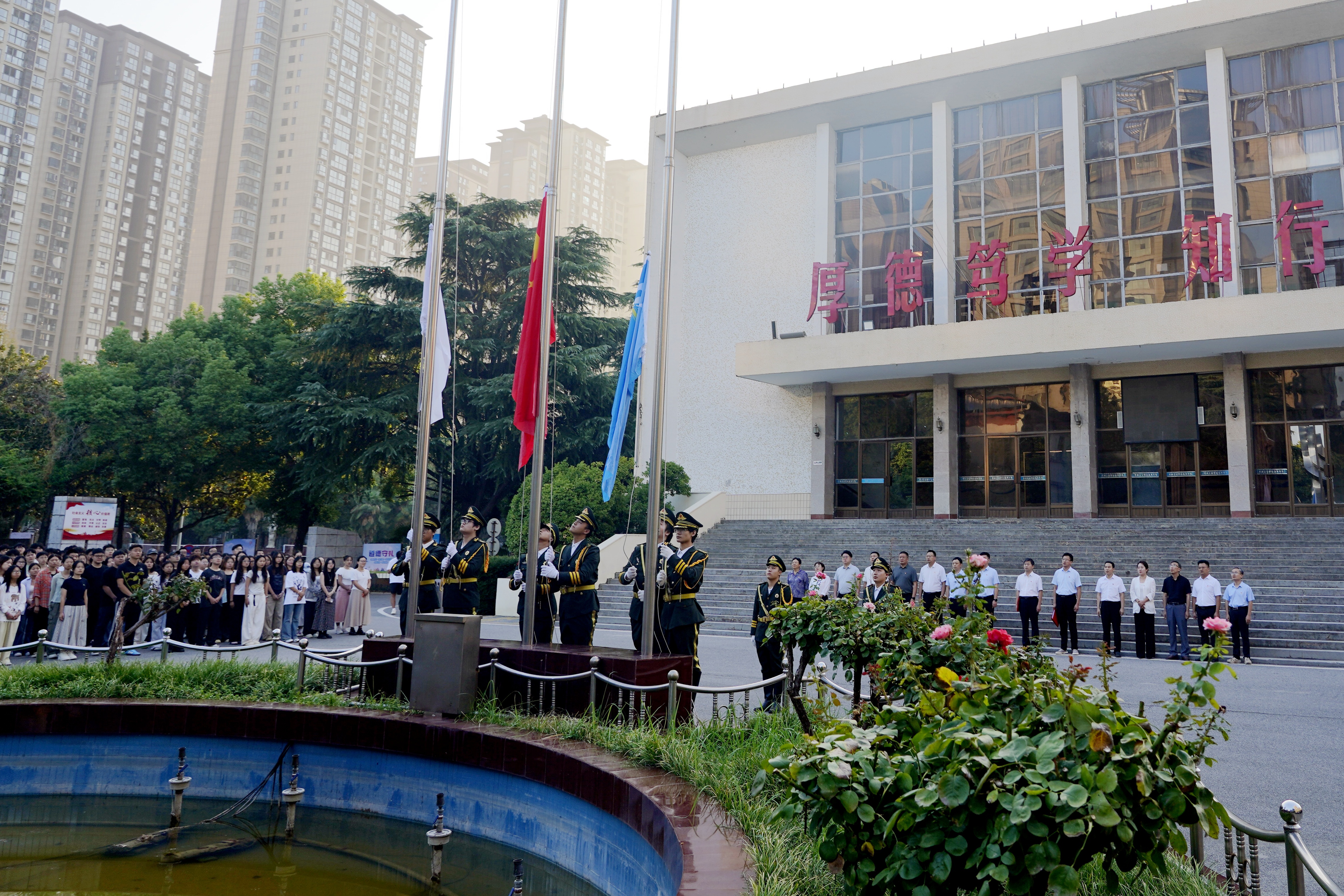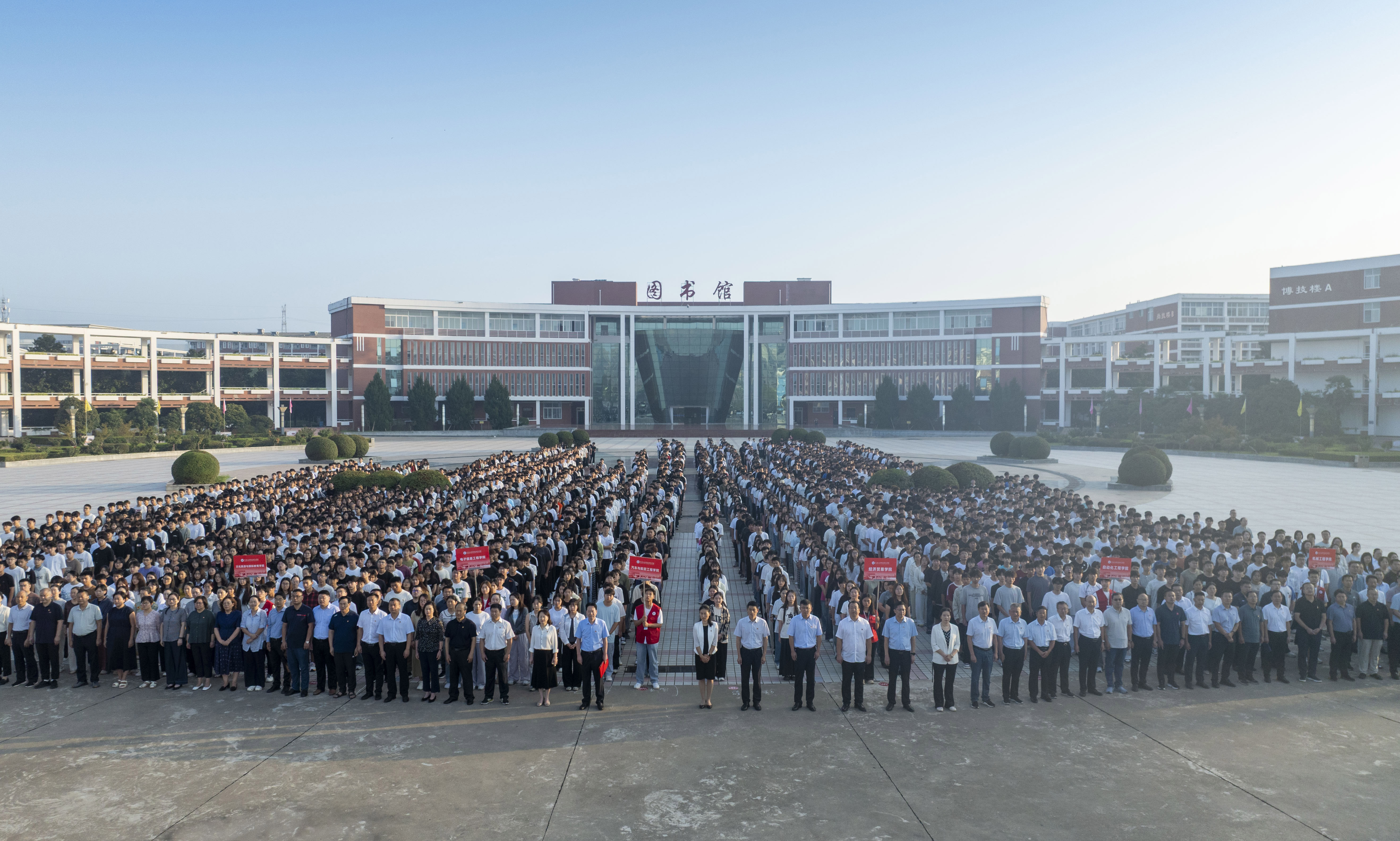 日出东方,晨光熠熠。9月1日,学校在孔明校区和光武校区同时举行2025年秋季学期首次升旗仪式。校领导屈保中、马小兵、贾庆成、朱成俊、冯书丽、王宏颖出席,全体中层干部、全体辅导员、班主任和2024级全体学生参加,副校长贾庆成和副校长朱成俊分别主持两个校区的升旗仪式。