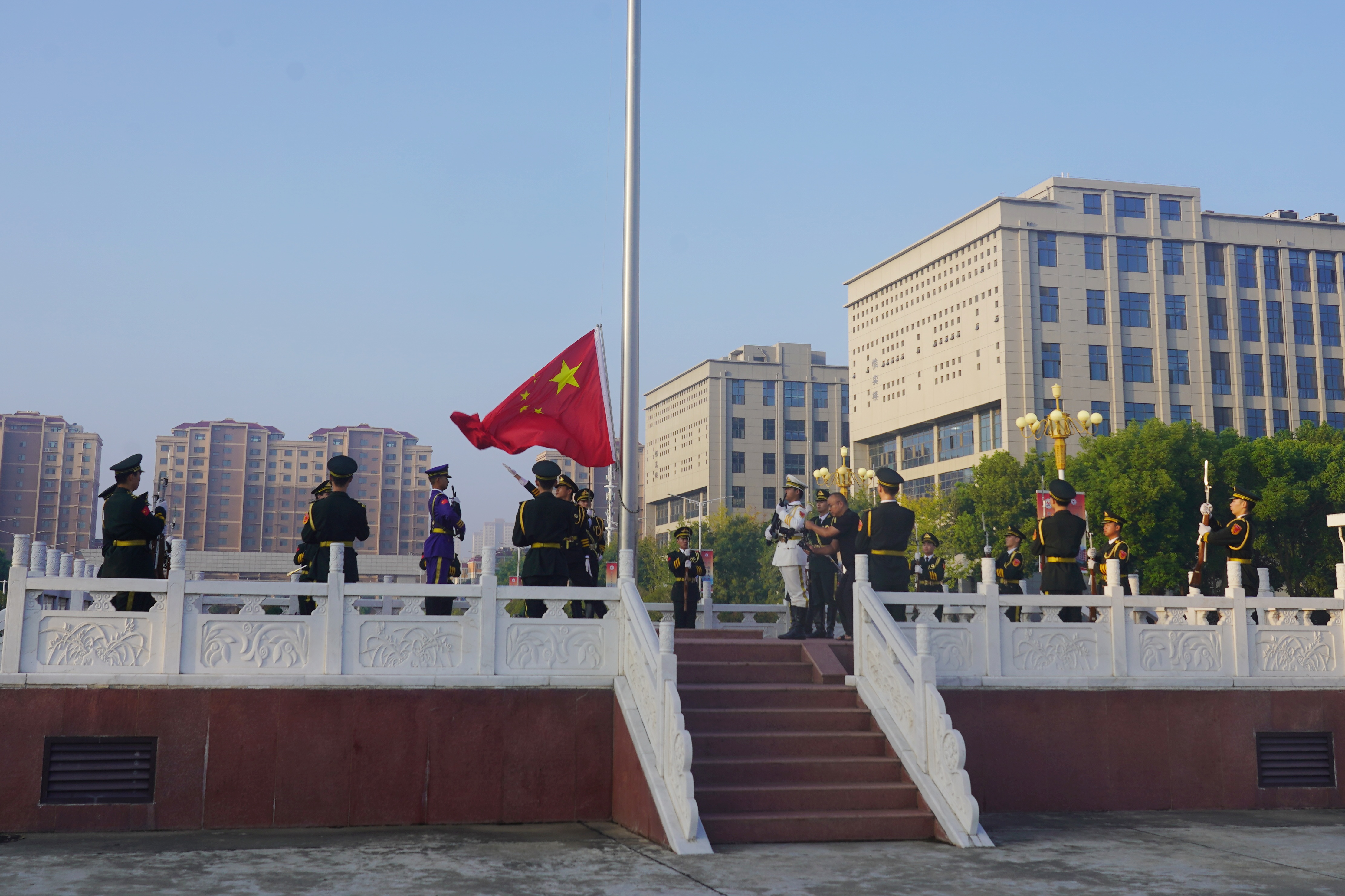 早上7时,伴随着激昂雄壮的《义勇军进行曲》,五星红旗冉冉升起,嘹亮的国歌声唱响了全体师生对祖国的无限热爱和崇高敬意。