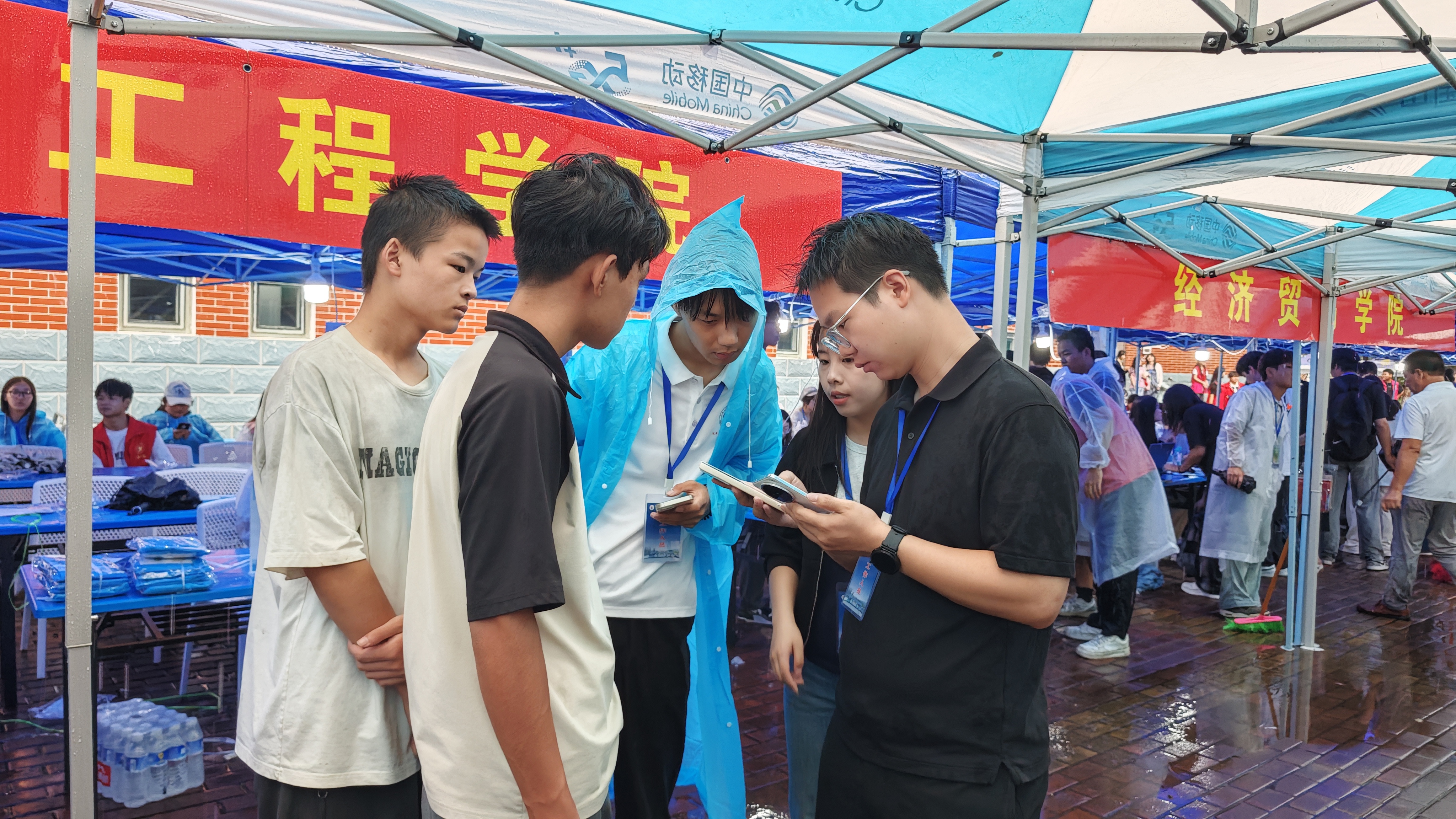 这场雨,恰似军工精神的淬炼。老师们浸湿的袖口藏着“严细精优”的传承,雨中清晰的指引彰显“厚德笃学”的担当。他们的寄语里,有“知行合一”的实践箴言,有“自强不息”的成长密码,更有对每颗年轻心灵的期许。